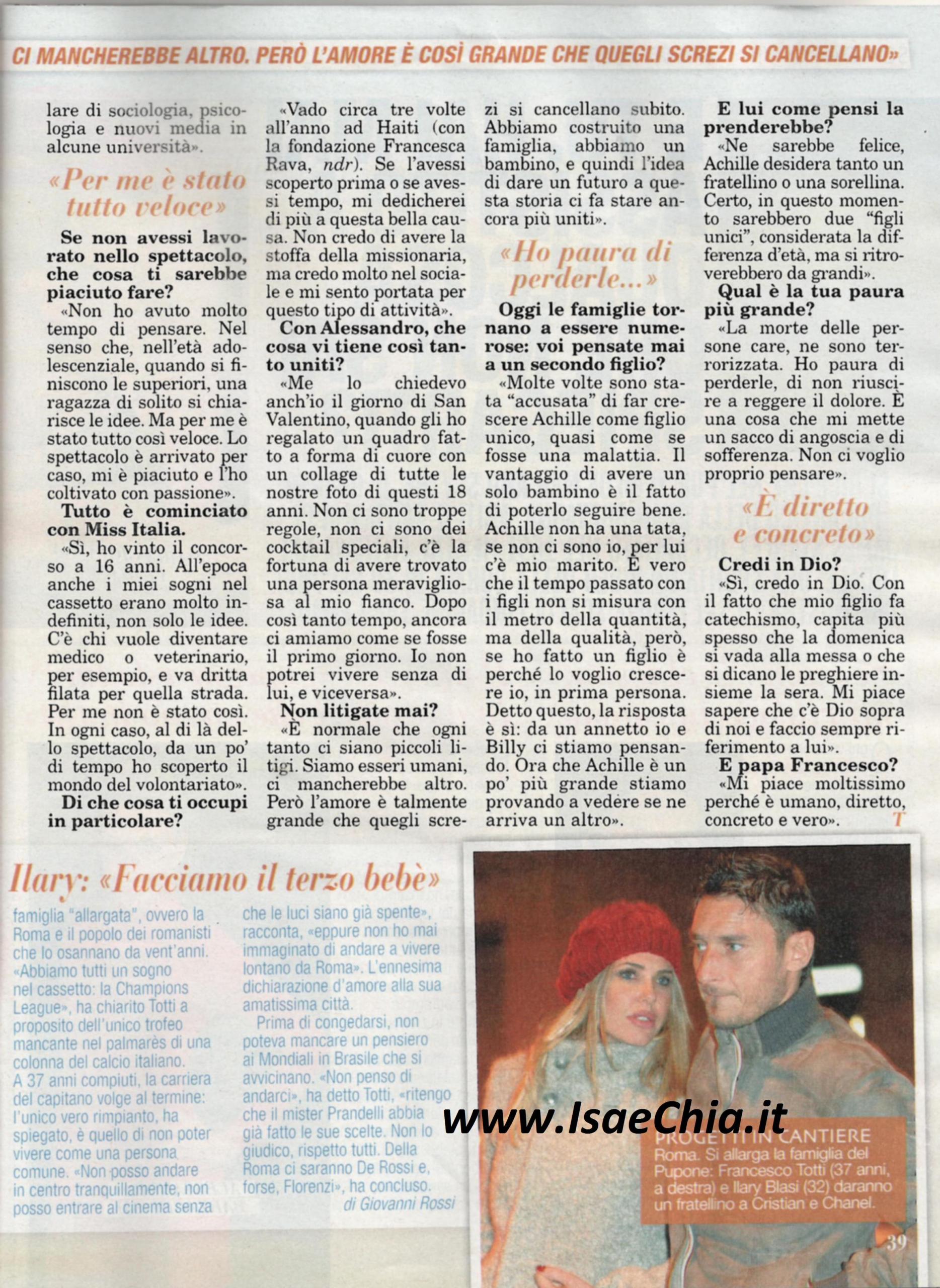 La bellissima ex Miss Italia Martina Colombari parla dei suoi autoscatti sexy: “Prima della moda delle selfie, due anni fa, ho fatto una mostra che si chiamava Martina invisibile, ma era un altro tipo di esperienza. Quegli scatti sono sempre gli stessi e ogni volta vengono tirati fuori, senza spiegarne assolutamente il contesto. Appena presentata quella mostra, fui addirittura invitata a convegni su psicologia, sociologia e nuovi media in alcune università. Io ho vinto Miss Italia a 16 anni, non ho mai avuto il tempo di pensare cosa mi sarebbe piaciuto fare nella vita. Lo spettacolo è arrivato per caso, mi è piaciuto e l’ho coltivato con passione. Ora sono impegnata con The Best of Musical, un live show che unisce quattro musical, in cui io e un bambino facciamo da ponte tra gli spettatori e i protagonisti dello spettacolo; per il pubblico è una bella esperienza, perché viene posta maggiore attenzione sulle loro emozioni”. Infine, parlando della sua vita privata, racconta: “Per San Valentino ho regalato a mio marito Billy Costacurta un collage di nostre foto dei 18 anni che abbiamo trascorso insieme. Dopo così tanto tempo, ci amiamo ancora come fosse il primo giorno e non so quale sia il segreto. E’ normale che ogni tanto ci siano screzi, ma l’amore è così grande che si cancellano subito. Tante volte sono stata “accusata” di aver fatto crescere Achille come figlio unico, quasi come se fosse una malattia, invece ha il vantaggio che lo si può seguire bene. Da circa un anno io e Billy stiamo pensando a dargli un fratellino e stiamo provando a vedere se ne arriva uno!”