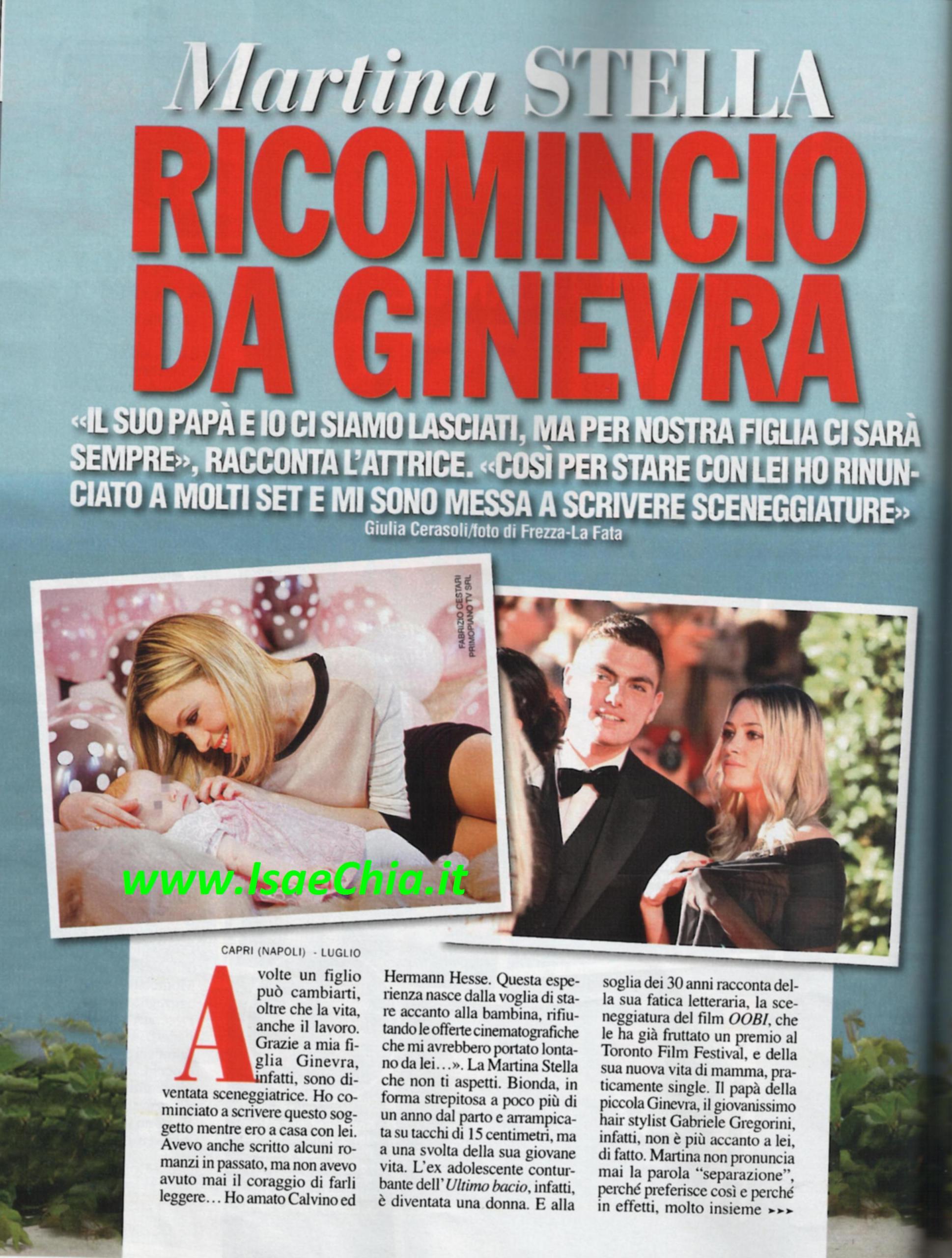 Da adolescente conturbante de L’ultimo bacio a donna: così è cambiata Martina Stella, oggi mamma praticamente single. Già, perché Gabriele Gregorini, papà della piccola Ginevra, di fatto non è più accanto a lei, anche se lei non ama parlare di “separazione”. “A volte un figlio può cambiarti la vita. Grazie a mia figlia, infatti, sono diventata sceneggiatrice: ho cominciato a scrivere la sceneggiatura per il film OOBI, premiato al Toronto Film Festival, quando ero a casa con lei, mentre in passato avevo scritto dei romanzi ma non avevo avuto il coraggio di farli leggere. Questa esperienza nasce dal rifiuto delle offerte cinematografiche che mi avrebbero portato via da lei”. Quando le si chiede se le dispiace crescere una bambina senza il padre vicino, risponde: “Mi ritengo fortunata, non ho problemi economici. Gabriele sarà sempre il papà per Ginevra e la persona più importante per lei, ma sono convinta che per il bene dei figli non bisogna restare insieme a tutti i costi. I miei si sono separati da grandi, cercando di stare insieme per forza e io ho provato un grande senso di liberazione quando si sono lasciati. In realtà sono tradizionale, avrei preferito sposarmi prima e poi avere un figlio, ma la vita ti stupisce. A fine luglio torno sul set e porto Ginevra con me: se la lascio più di una sera mi sento in colpa. Ora non cerco nulla, mi lascio stupire. Ho avuto pochissime storie, importanti. Ora però ho una razionalità differente, cerco di stare in buoni rapporti con tutti. La mia paura più grande è che il mio lavoro di attrice possa creare problemi a Ginevra: quando sarà cresciuta, cosa penserà vedendomi fare la mamma di altri bambini sullo schermo?”