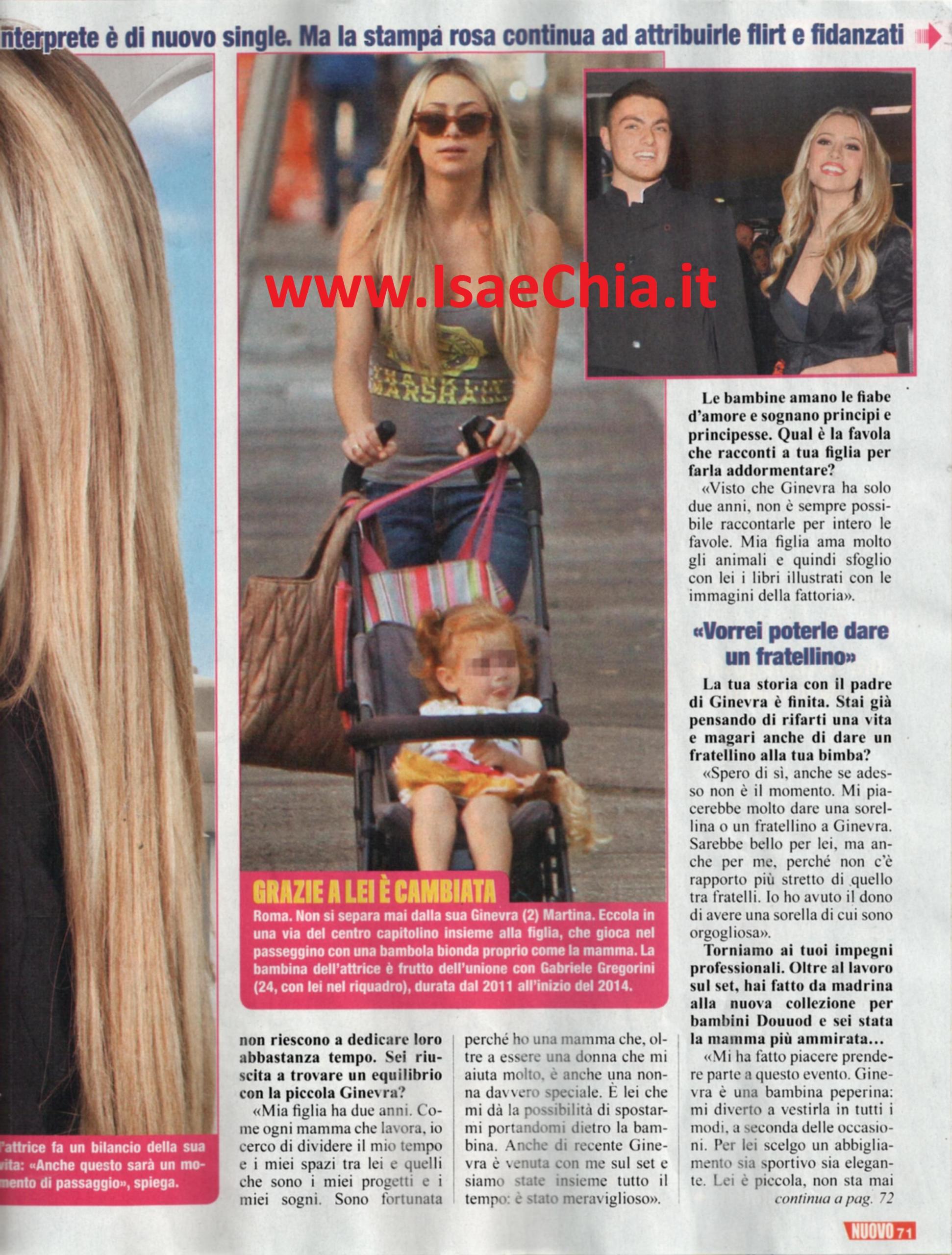 Per l’attrice Martina Stella è finita la relazione con Gabriele Gregorini, padre della piccola Ginevra, e ultimamente le è stato attribuito un flirt con un misterioso personaggio dell’alta società. Quando le si fa notare l’interesse pubblico nei suoi confronti, la bella toscana risponde: “Il pressing della stampa rosa non mi ha mai abbandonato. Prima non mi sapevo difendere, mi lasciavo condizionare da ciò che scrivevano su di me ed emotivamente ero molto coinvolta. Adesso vivo il gossip con il dovuto distacco e con ironia”. All’alba dei 30 anni, Martina fa il resoconto della sua carriera: “Il lavoro di mamma è sicuramente quello più appagante, ma anche il più difficile. Ginevra è il centro della mia vita e ha spostato tutte le mie priorità: al vertice c’è sempre lei e non potrebbe essere altrimenti. Come ogni mamma che lavora, cerco di dividermi tra lei e i miei progetti, i miei sogni. Sono fortunata ad avere una mamma che è anche una nonna molto speciale e mi permette di spostarmi portandomi dietro mia figlia. Di recente Ginevra è venuta sul set ed è stato meraviglioso”. Quando invece le si chiede del suo ex, risponde: “Spero di rifarmi presto una vita, anche se adesso non è il momento. Mi piacerebbe dare un fratellino o una sorellina a Ginevra; è importante per lei, come lo è stato per me: ho il dono di avere una sorella di cui sono orgogliosa”. Infine, dopo aver parlato di moda, dato che è stata intervistata in occasione del party per la linea d’abbigliamento Douuod, rivela il suo ruolo nel prossimo film: “In Rosso mille miglia, girato a Brescia e presto nei cinema, si racconta la storia della famosa corsa automobilistica del 1927. Io sono una giornalista e per rendermi credibile ho studiato bene la categoria! Prima tra me e la stampa c’era una certa conflittualità. Poi, crescendo e capendo certi meccanismi e le dinamiche del mio lavoro, ho imparato a gestirmi e a migliorare il mio rapporto con i giornalisti. Ora ho un ottimo rapporto, direi!”