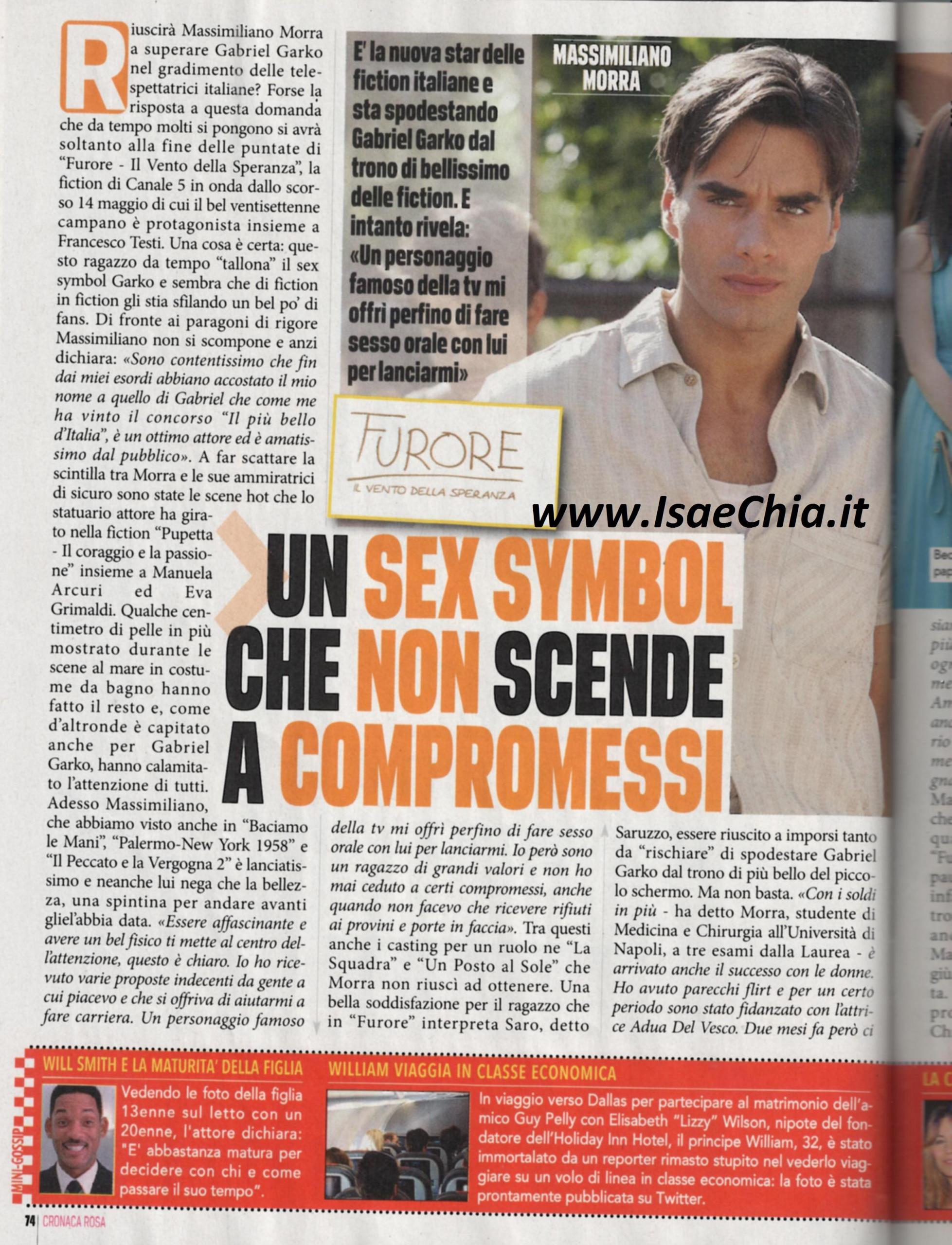 In seguito al successo della fiction Furore, in cui interpreta il fratello di Francesco Testi, l’attore Massimiliano Morra è stato paragonato anche all’amatissimo Gabriel Garko: “Sono contentissimo che fin dagli esordi mi abbiano accostato a lui, che come me ha vinto il concorso Il più bello d’Italia”. A favorire il suo successo con le donne sono state le scene hot con Manuela Arcuri ed Eva Grimaldi e qualche centimetro di pelle mostrata in più: “Essere affascinante e avere un bel fisico mette al cento dell’attenzione. Io ho ricevuto proposte indecenti da persone a cui piacevo che si offriva di aiutarmi a fare carriera. Un personaggio famoso della tv mi ha persino offerto di fare sesso orale con lui per lanciarmi. Io però ho dei valori e non ho mai ceduto a questi compromessi, anche se ai provini ricevevo solo porte in faccia”. Con i soldi guadagnati, il 27enne napoletano si è anche mantenuto gli studi e gli mancano tre esami per la laurea in Medicina e Chirurgia, e non solo: “Con i soldi in più, è arrivato anche il successo con le donne. Sono stato fidanzato con l’attrice Adua Del Vesco, ma ci siamo fidanzati due mesi fa: ci scontravamo continuamente e c’erano storie di gelosia. Ammetto che la colpa è anche mia, perché sono un tipo solitario e non riesco a comunicare facilmente”. Secondo alcuni, infatti, il motivo per il litigio con Testi sul set sarebbero state proprio le attenzioni che il gieffino avrebbe dedicato ad Adua, anche lei compagna di set. Ultimamente, invece, Massimiliano è stato fotografato con un’altra collega, Cosima Coppola: sarà lei a fargli battere di nuovo il cuore?