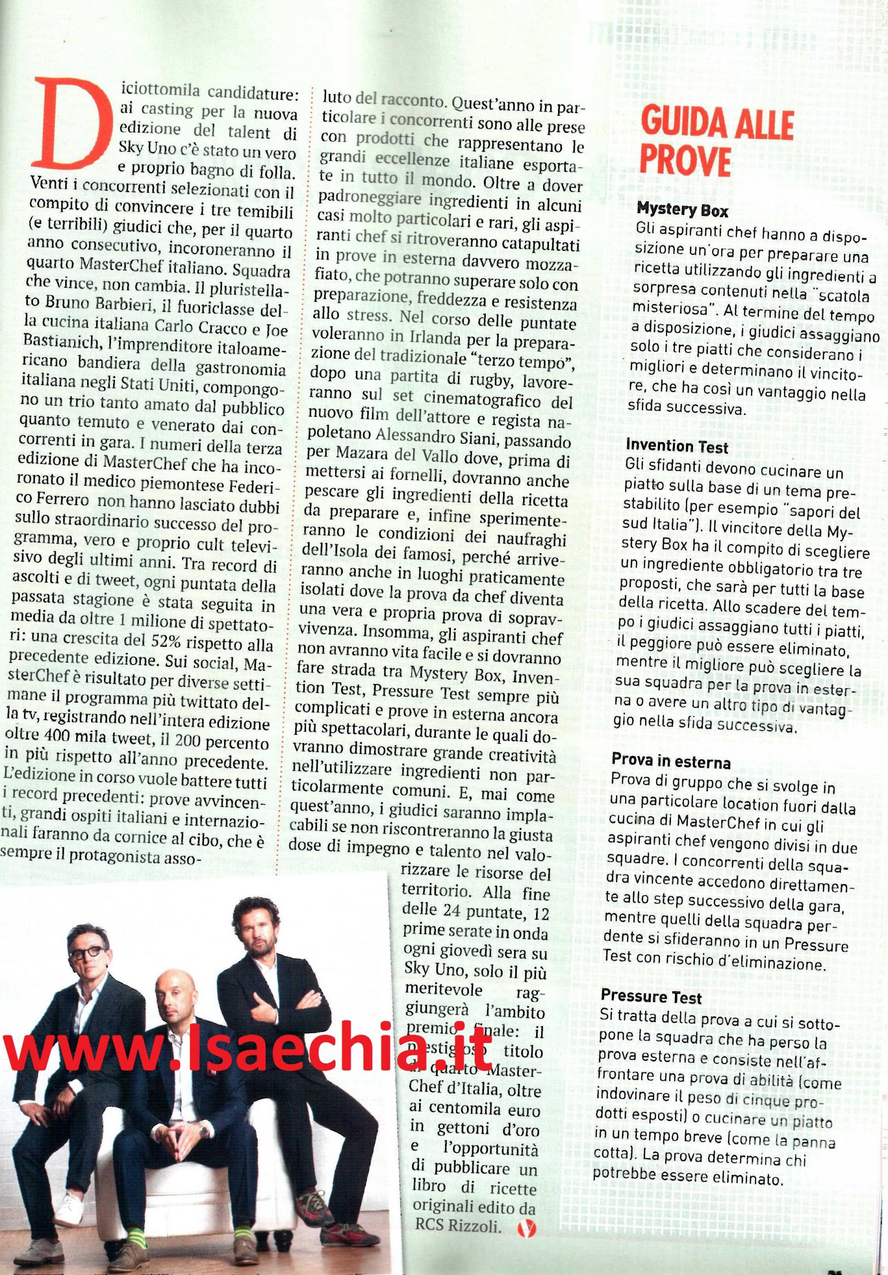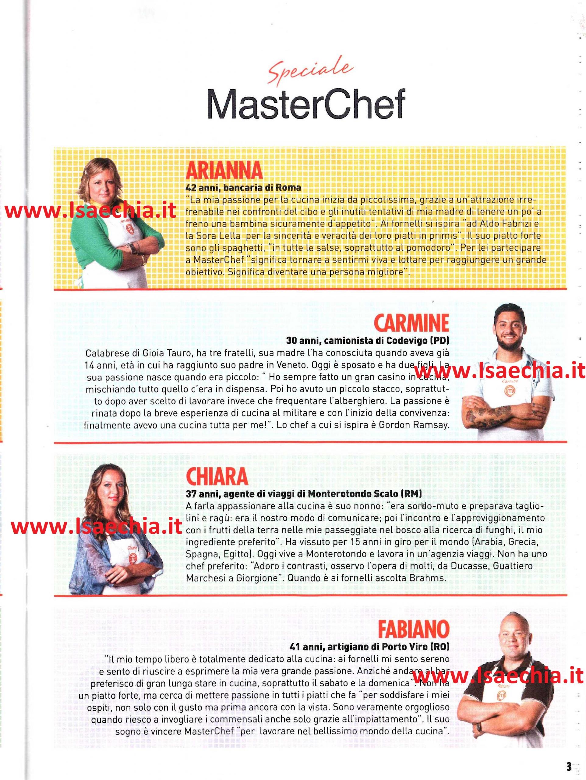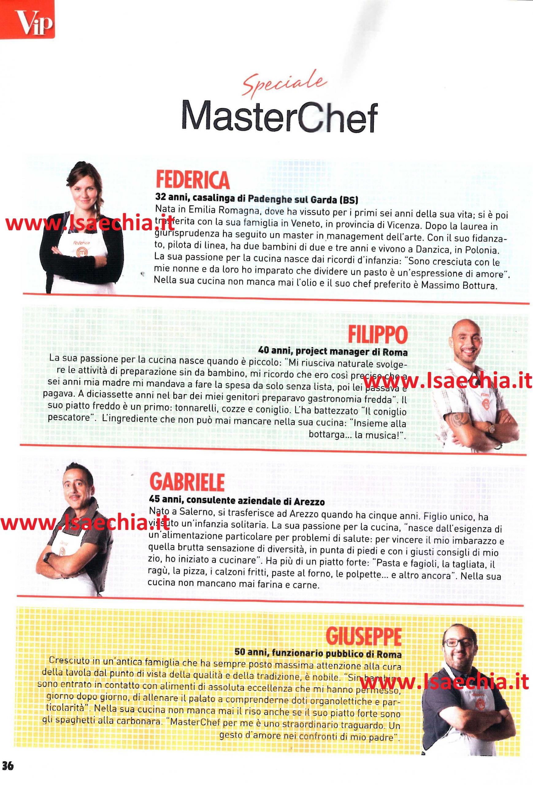 Dopo l’intervista, il settimanale Vip presenta in anteprima tutti i 20 concorrenti della quarta edizione: la rappresentante napoletana Ilaria; la wedding planner bergamasca Maria; Nicolò, lo studente 21enne con la passione per polli, galline e fiori; l’informatico e catechista piemontese Paolo; Serena, 26enne vicentina che sogna di aprire il tipico bar giapponese detto Maid Latte; la casalinga barese Silvana; l’elettricista Simone, che sogna di vincere per condurre un programma tutto suo; l’agente immobiliare Stefano, l’infermiera biellese Valentina; la barista milanese Viola, che da piccola soffriva di obesità; l’impiegato milanese Alessandro; la studentessa casertana Amelia; la bancaria di Roma Arianna; o ancora Carmine, nato in Calabria e ora camionista in Veneto; Chiara, che ha vissuto in Arabia, Grecia, Spagna ed Egitto; l’artigiano veneto Fabiano; Federica, laureata in Giurisprudenza, che fa la casalinga a Danzica, in Polonia, dove vive con compagno e figli; Filippo, inventore del “coniglio pescatore”; Gabriele, che prende la sua passione per la cucina dall’esigenza di un’alimentazione particolare per problemi di salute, e Giuseppe, cinquantenne funzionario pubblico di Roma.