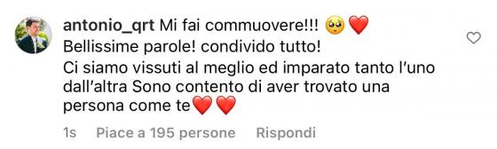 Al post è seguito subito il commento di Antonio, che ha ricambiato l’affetto e la stima nei suoi confronti.