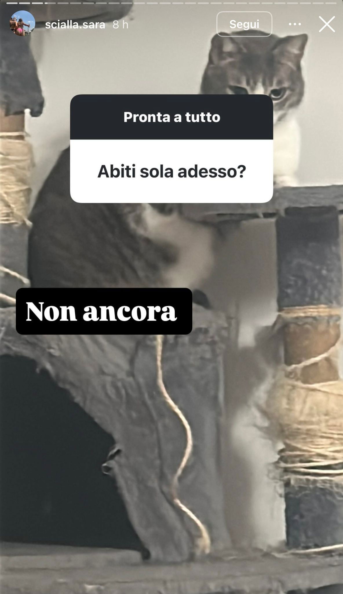 Vivere sotto un ponte non l’ho valutata come alternativa, diciamo che sto cercando, un appartamento l’ho già trovato devo solo capire bene le dinamiche.