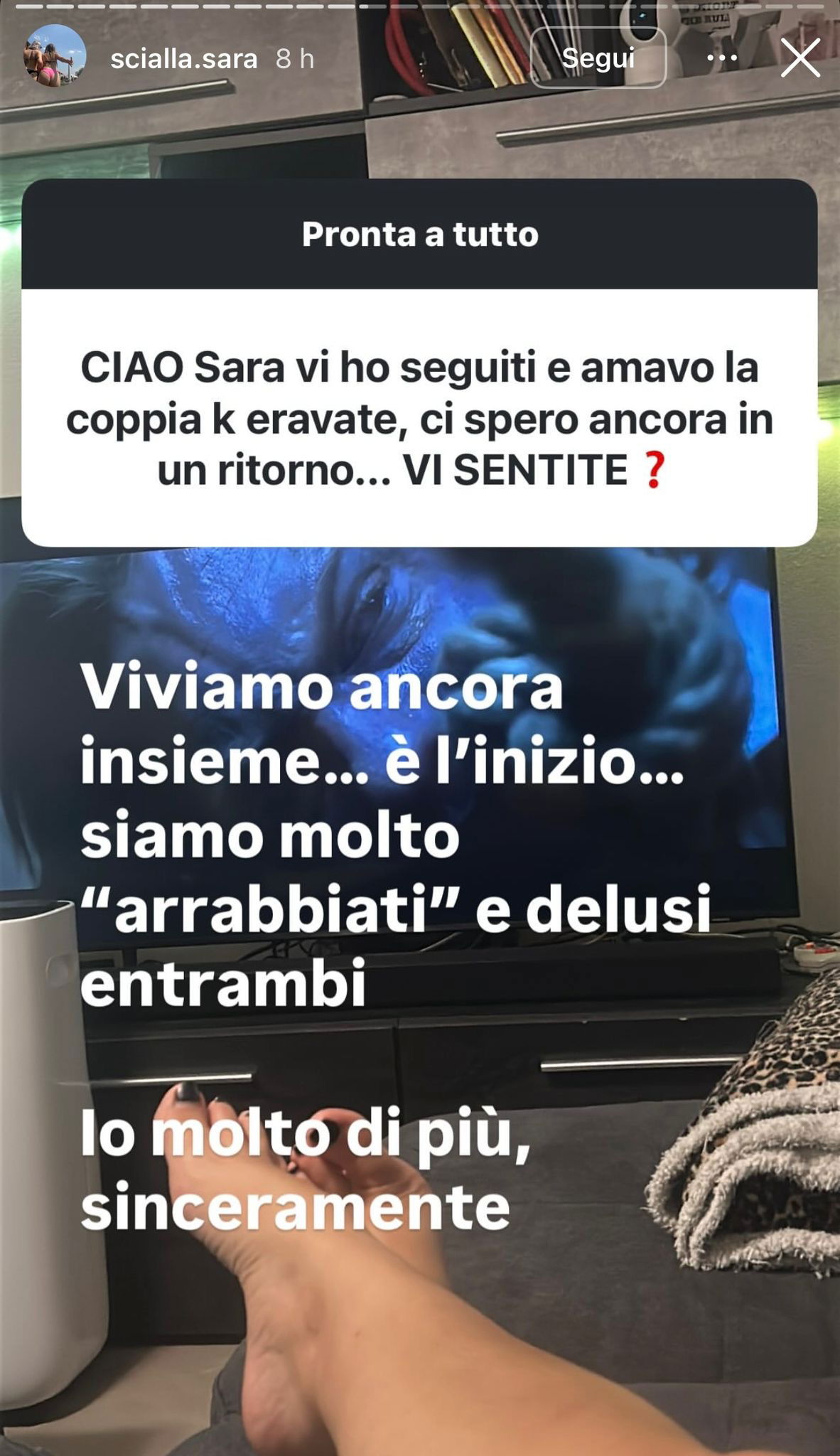 Nelle scorse ore poi Sara ha deciso di rispondere ad alcune domande dei fan, chiarendo anche i motivi dietro alla loro rottura: