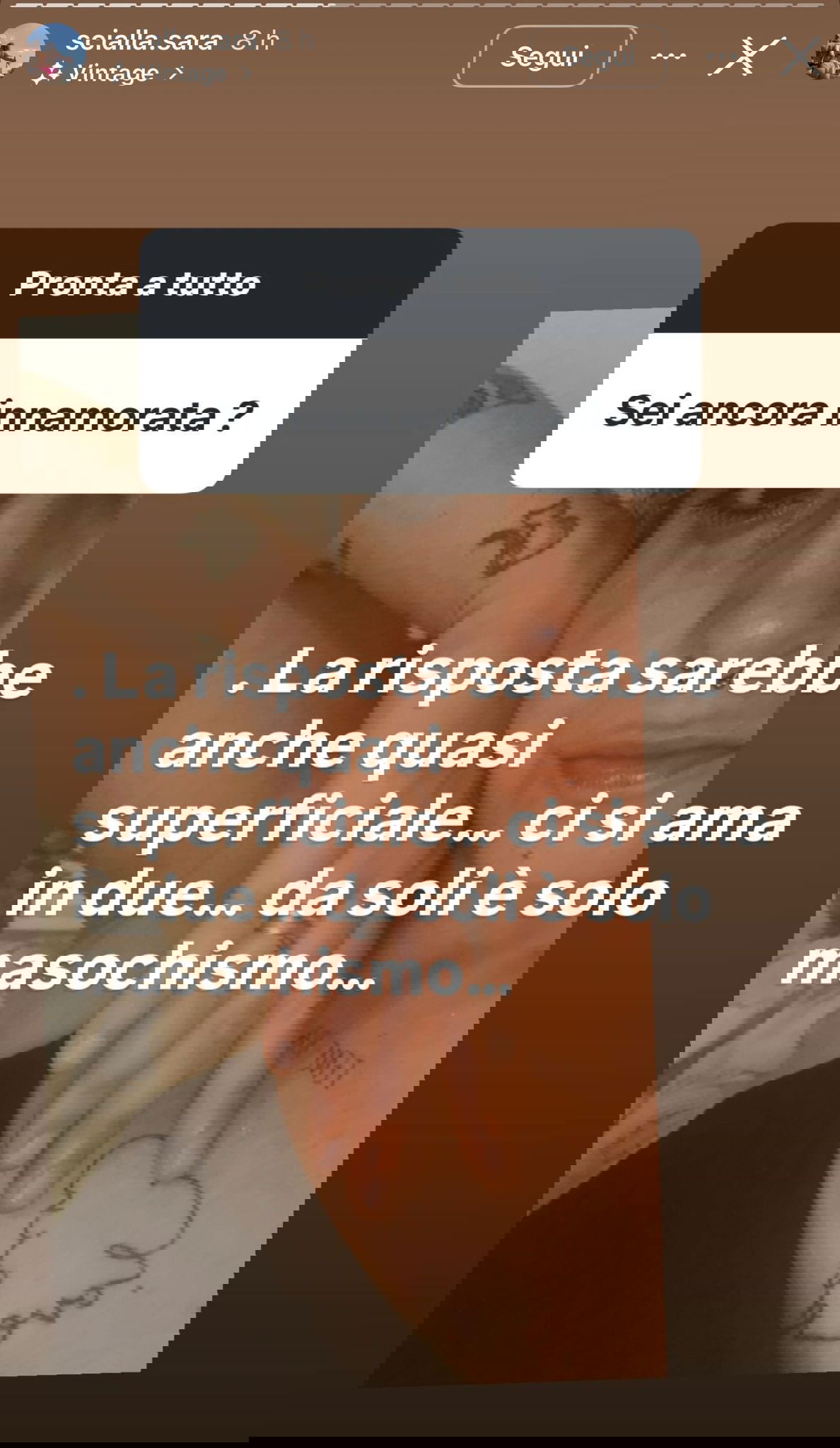 E a chi le ha chiesto se è ancora innamorata questa è stata la sua risposta.