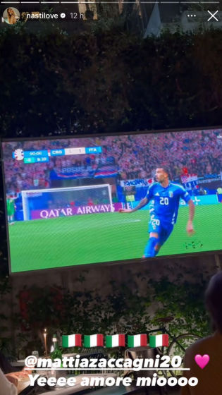 L’influencer partenopea subito dopo il gol di Zaccagni ha pubblicato nelle sue storie Instagram il replay del gol che portato l’Italia a pareggiare scrivendo “Yeee amore mio”.