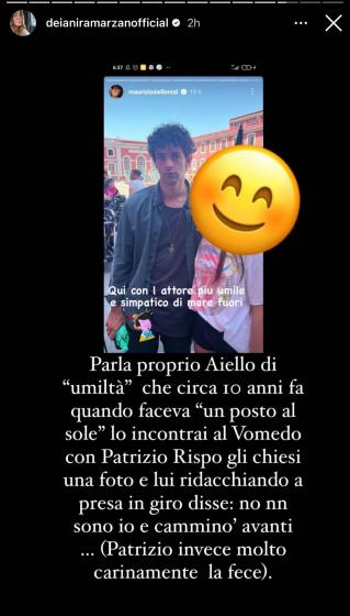 L’emoticon di Pinocchio farebbe pensare che quanto pronunciato da Aiello sia alquanto sarcastico. Evidentemente Maurizio non ha ravvisato tutta questa umiltà e simpatia nel giovane interprete di Mare Fuori.