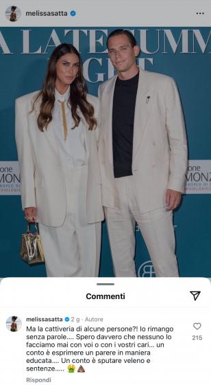 Leggendo i commenti al post, tra i complimenti di alcuni utenti se ne trovano tanti altri di persone che invece non vedono di buon occhio questa relazione. I commenti negativi rilasciati sotto il post di Melissa sono di vario genere e vanno da coloro che criticano la Satta per sembrare “la madre di Carlo“, a chi invece ha contestato il suo modo di vestire, giudicandola eccessivamente coperta.