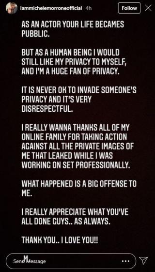 Voglio davvero ringraziare tutta la mia famiglia online per aver protestato contro tutte le mie foto non pubbliche che sono trapelate mentre ero impegnato sul set a livello professionale.