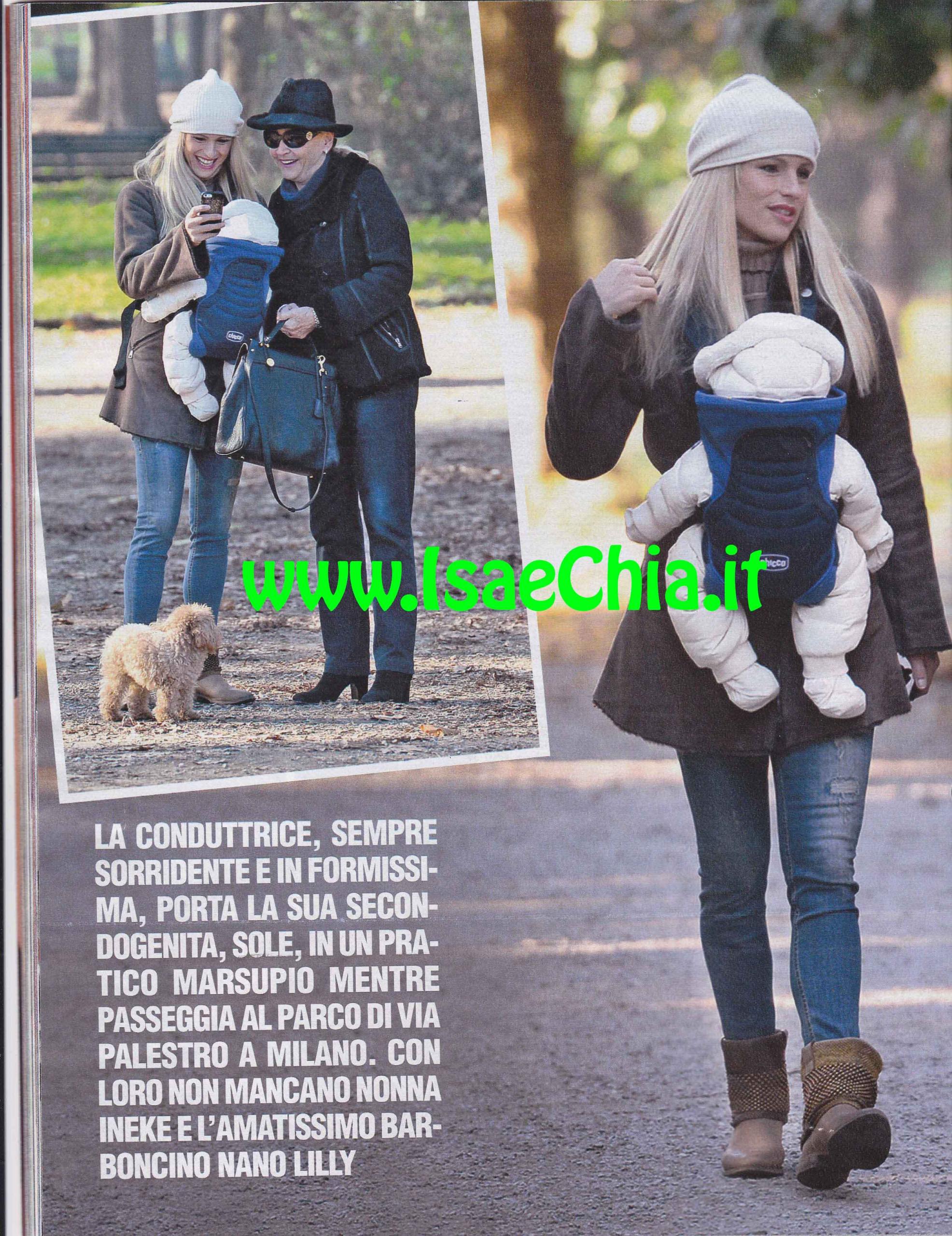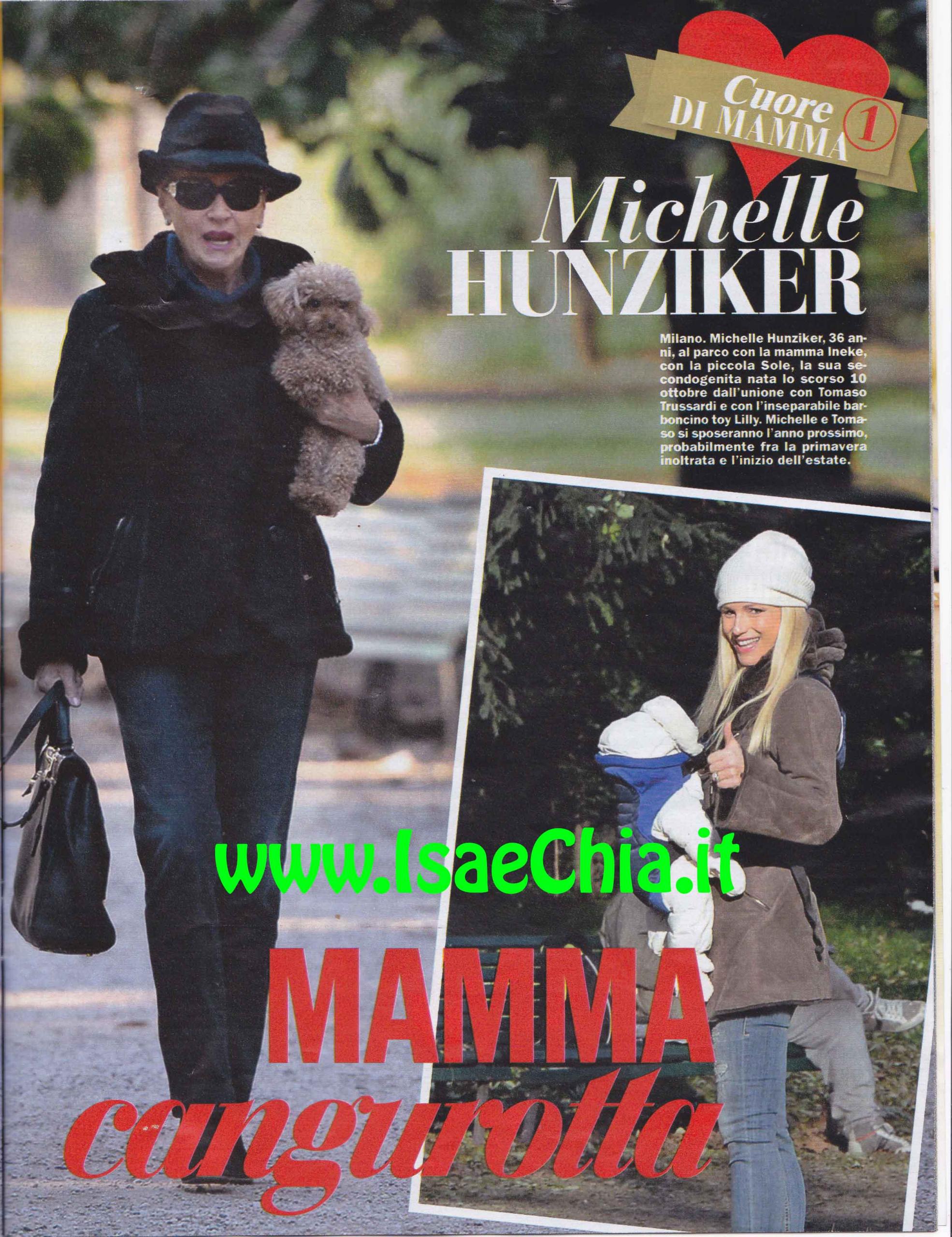 La conduttrice Michelle Hunziker è stata immortalata in giro per Milano insieme alla sua piccola Sole, e alla nonna della piccola, sua madre Ineke. A far compagnia all’allegra famigliola l’inseparabile cagnolina Lilly. Le nozze col compagno Tomaso Trussardi ci saranno, è ufficiale, in primavera, o comunque entro l’estate. Nel frattempo, i due si sono regalati una fantastica luna di miele anticipata: hanno approfittato delle tre suite dell’hotel Steigenberger Drei Mohren di Augusta, dove Michelle sta registrando Wetten dass (versione tedesca di Scommettiamo che…), per il quale ha ricevuto un bel cachet: una è per lei e Tomaso, una per Sole e la tata, e l’ultima…ad uso camerino per gli abiti che Michelle indossa durante lo show. Nel centro benessere i due si sono concessi sauna e massaggi rilassanti. Trussardi, nel frattempo, si cimenterà anche come “giudice” nel programma di moda Project Runway Italia con Eva Herzigova e Alberta Ferretti: “Partecipo da imprenditore, non faccio televisione” specifica però lui, che si vocifera sia “cattivo” e abbia fatto piangere le concorrenti…