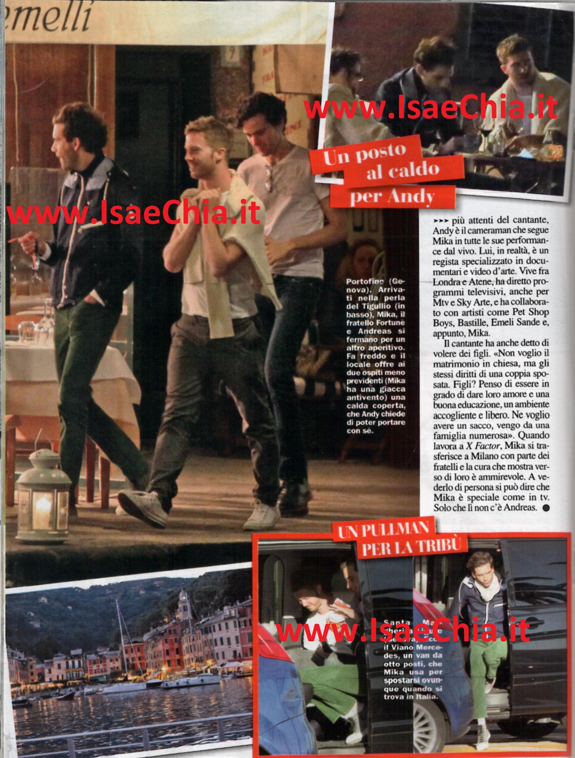 Il cantante Mika, che per il secondo anno è nella giuria di X Factor, ha recentemente reso pubblica la sua omosessualità. Due anni fa, alla rivista Instinct, ha confessato: “Mi chiedete se sono gay, vi rispondo di sì. Mi chiedete se le mie canzoni parlano di relazioni con uomini? Io vi dico di sì. E’ solo attraverso la musica che ho trovato il modo di venire a patti con la mia sessualità”. Inoltre, durante un’intervista al programma Le invasioni barbariche all’inizio del 2014, la star di origini libanesi ha rivelato: “Ho una relazione da molti anni e sono innamorato”. Molte canzoni, specialmente le più romantiche, sono dedicate, infatti, al suo fidanzato, il regista Andreas Dermanis, col quale sta da otto anni. “Andy” è un regista specializzato in documentari e video d’arte, vive tra Londra e Atene, ha diretto programmi televisivi e ha lavorato con Pet Shop Boys, Emeli Sandé e Bastille. E adesso, per la prima volta grazie alle esclusive del settimanale Chi, sono state rese pubbliche delle foto di Mika in compagnia del suo amato. Eccoli prima a Santa Margherita Ligure, dove sostano all’Hotel Miramare: nonostante l’aria gelida, Andreas tiene duro, coperto solo da una t-shirt. Poi, insieme al fratello di Mika, Fortuné, fanno una lunga passeggiata in direzione Portofino. Giunti a Portofino, si fermano per un aperitivo; Mika, previdente, indossa una giacca a vento, mentre il locale offre agli altri due una coperta. Il cantante ha rivelato di desiderare dei figli in futuro: “Non voglio un matrimonio in chiesa, ma gli stessi diritti di una coppia sposata sì. Figli? Penso di poter dare loro amore e buona educazione, un ambiente libero e accogliente. Ne voglio un sacco: provengo da una famiglia numerosa!”.