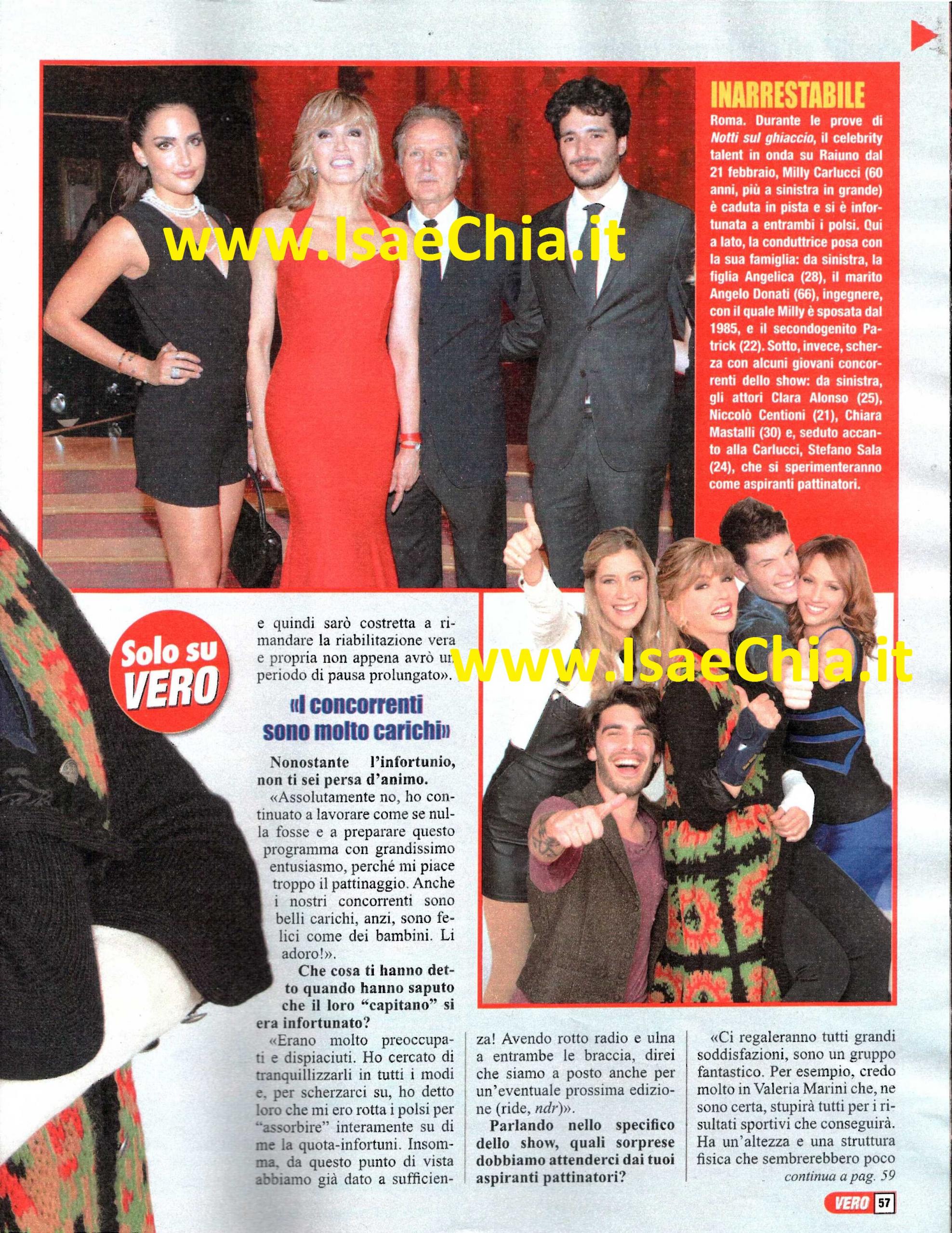 La conduttrice Milly Carlucci tornerà a breve in tv con il programma Notti sul ghiaccio, nel quale 11 concorrenti si cimenteranno col pattinaggio: il Principe Emanuele Filiberto di Savoia, la showgirl ed ex naufraga Valeria Marini, gli attori Barbara De Rossi, Giulio Base, Giorgio Borghetti, Nicolò Centioni (protagonista de I Cesaroni, già concorrente di Pechino Express), Clara Alonso e Chiara Mastalli, il cantante Stefano Sala, fidanzato della concorrente di Ballando con le stelle Dayane Mello, lo sciatore Giorgio Rocca e l’atleta Manuela Di Centa. Dal 21 febbraio questi concorrenti si sfideranno e Milly sarà lì, pronta a condurre, nonostante l’incidente che l’ha coinvolta ultimamente e che le ha causato la rottura dei polsi: “Adesso sono in fase di netta ripresa, per fortuna. Lo sport è fatto anche d’infortuni e la cosa più paradossale è che spesso questi incidenti succedono mentre sei ferma, come è successo a me. Forse ero un po’ distratta, ma sta di fatto che mi sono trovata a terra e per proteggere la schiena, già operata in passato, mi sono spezzata entrambi i polsi. Per la prima puntata avrà ancora il tutore ai polsi: il dottore mi ha detto che non posso prendere nemmeno una minima botta. In più dovrei sottopormi a fisioterapia, ma ora non ho molto tempo e quindi sono costretta a rimandare la riabilitazione vera e propria a quando avrò un periodo di pausa prolungato. Comunque non mi sono persa d’animo e ho continuato a lavorare, perché mi piace troppo il pattinaggio. I miei concorrenti erano tutti preoccupati per me, ma per sdrammatizzare io ho detto che mi ero rotta i polsi per “assorbire” completamente su di me la quota-infortuni! Avendo rotto radio e ulna di entrambe le braccia, penso abbiamo dato abbastanza anche per la prossima edizione!“. Quando le si chiede invece che sorprese dobbiamo aspettarci, Milly risponde: “Credo che Valeria Marini ci stupirà con i risultati che conseguirà. Ha un’altezza e una struttura fisica che sembrano poco adatte alla disciplina, invece pattina molto bene. Lo stesso vale per Giulio Base, che ha detto di non aver mai indossato un paio di pattini. Oltre ai miei campioni, avrei voluto anche la conduttrice di Chi l’ha visto, Federica Sciarelli, che oltre ad essere una fuoriclasse del giornalismo, è anche un’appassionata di questo sport. Non sarà una nostra concorrente, ma posso anticipare che sarà “pattinatrice per una notte”. Un altro che vorrei è Fabrizio Frizzi. Lui dice che è scarso a ballare e negato a pattinare, ma sono sicura che in pista farà un figurone!“. Infine, quando si osserva che ancora una volta è in sfida diretta con Maria De Filippi e il suo programma del sabato sera C’è posta per te, la Carlucci risponde: “Non si tratta di una sfida, sono due programmi che non sono nemmeno partiti insieme. Il concorrente è iniziato già da 5 settimane; a noi basta farci notare dal bacino di pubblico costituito dalle famiglie. In questo periodo di vacche magre, in cui si fanno i salti mortali per raccogliere i soldi per la prima serata, stabilire chi vince e chi perde è un lusso che non possiamo concederci. Inoltre, la stampa dovrebbe soffermarsi su un aspetto spesso trascurato, ossia sui contenuti lanciati dai programmi e non solo e soltanto sugli ascolti!“.