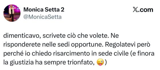 Questo a quanto pare non è sfuggito al fandom della Di Palma che a detta di Monica Setta si è scatenato in insulti e rimostranze tali da essere passibili di querela: