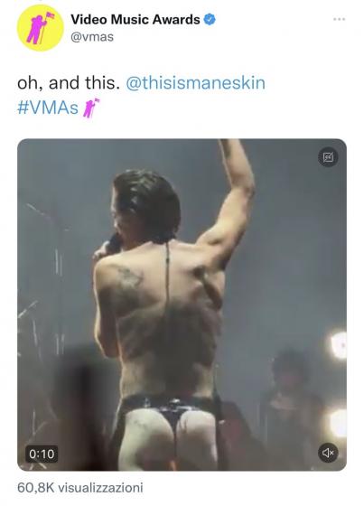 Il look sfoggiato da Damiano David sul palco lasciava ben poco all’immaginazione