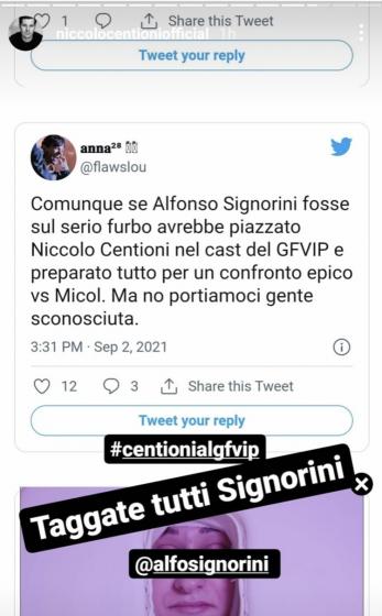 Niccolò Centioni, dopo gli scontri di fuoco con l’ex collega Micol Olivieri, fa un appello esplicito ad Alfonso Signorini