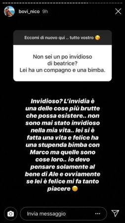 Quella con Beatrice è stata davvero una storia importante per Nicolas, ad oggi ancora la più importante che abbia mai vissuto, e rispondendo alle domande dei più curiosi su Instagram non lo ha negato, spiegando anche in che rapporti è rimasto adesso con lei: