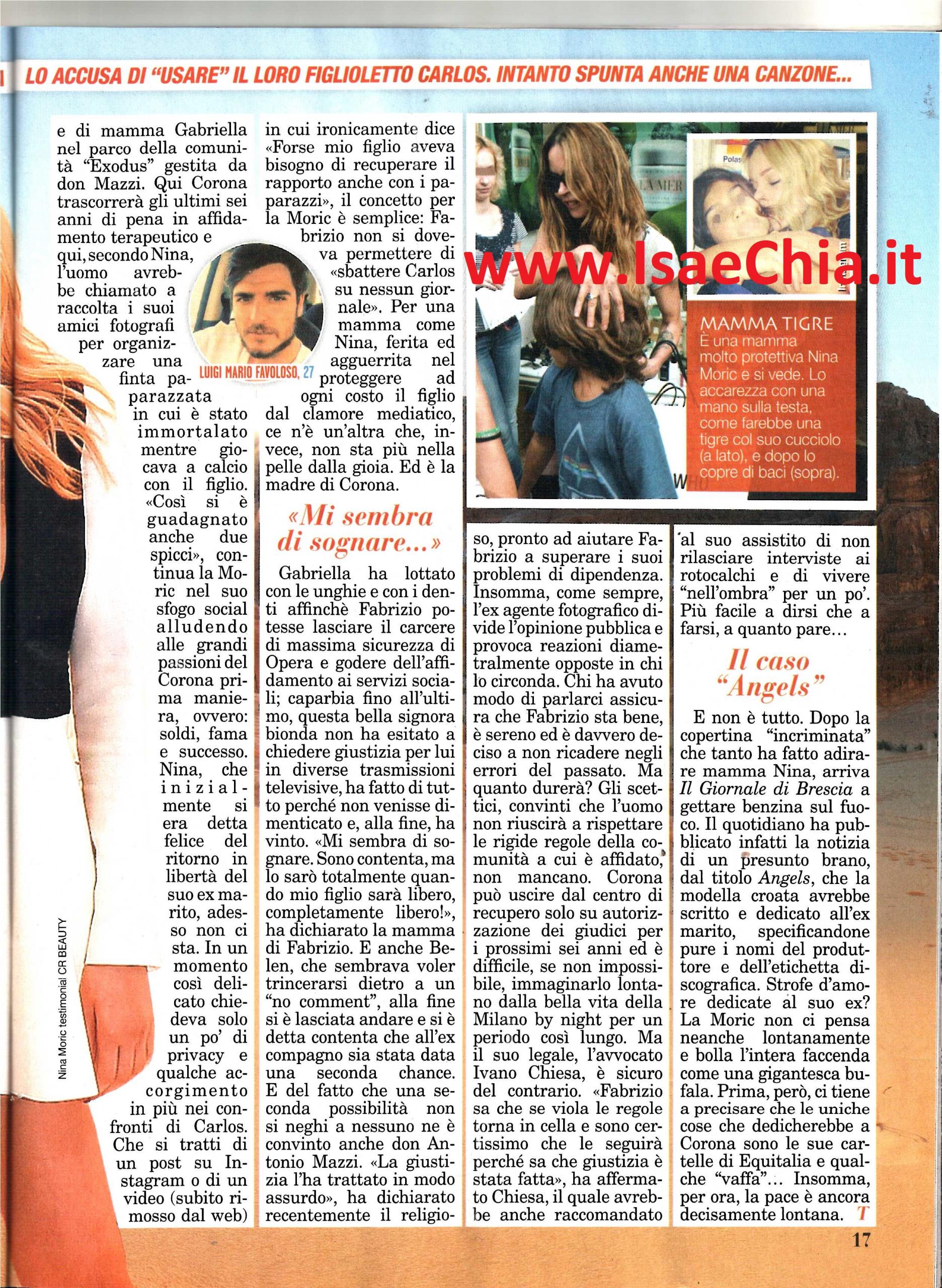 E’ finalmente riuscito ad ottenere la riduzione della pena, l’ex re dei paparazzi, Fabrizio Corona. Uscito di prigione, Corona si è fatto vivo sui social con delle foto in palestra e alcune brevi dichiarazioni, in cui dice di esser cambiato. Ma, a quanto pare, non gli crede molto la sua ex moglie, la modella croata Nina Moric. L’ex naufraga dell’Isola dei famosi, infatti, ha dichiarato: “E’ lo stesso uomo che è entrato in galera tre anni fa. Fra un mese farà un’altra ca**ata“. L’astio che pervade le parole di Nina sono dovute alla copertina di un noto settimanale che ritrae Corona insieme al figlio tredicenne Carlos Maria e alla nonna paterna del ragazzo, la signora Gabriella, nel parco della comunità Exodus, gestita da don Antonio Mazzi, cui è affidato Corona per sei anni. Secondo la Moric, infatti, sarebbe stato Fabrizio stesso a chiamare i fotografi: “Così si è guadagnato anche due spicci” ha aggiunto lei. E dire che inizialmente si era espressa a favore della scarcerazione dell’ex marito! Però, forse, in questo momento così delicato, avrebbe preferito il rispetto della privacy di suo figlio. “Forse mio figlio aveva bisogno di recuperare il rapporto anche con i paparazzi. Non si doveva permettere di sbattere Carlos sui giornali” ha detto lei in un video velenoso apparso sul web e poi subito rimosso. Per ora, l’ex naufraga è l’unica ad essersi espressa in modo negativo su Corona. Per lui si è battuta molto la madre Gabriella, che ha dichiarato: “Mi sembra di sognare, sono contenta. Ma lo sarò totalmente quando mio figlio sarà totalmente libero“. E persino un’altra sua ex, Belén Rodriguez, si è detta contenta che gli sia stata data una seconda chance. Don Antonio Mazzi, infine, ha dichiarato: “La giustizia lo ha trattato in modo assurdo” e per questo si è proposto di aiutarlo con la sua comunità. Ma la storia non sembra finire qui. Pare, infatti, che Nina abbia pronto un brano, dal titolo Angels, che avrebbe scritto e dedicato all’ex marito, di cui Il giornale di Brescia specifica anche produttori ed etichetta discografica. La Moric, che ha debuttato qualche tempo fa anche nel mondo della musica, ha però smentito chiamandola una grande bufala e ha precisato che l’unica cosa che dedicherebbe a Fabrizio sono le sue cartelle di Equitalia e qualche vaffa…!