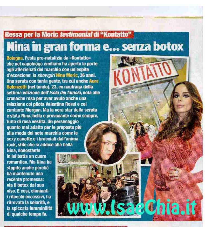 Il marchio Kontatto ha aperto un punto vendita a Bologna e per l’occasione ha avuto come ospiti le naufraghe dell’Isola dei Famosi Nina Moric ed Aura Rolenzetti. La modella croata, in particolare, si è fatta notare per la sua avvenenza. Di rosa vestita, ha stupito per aver mantenuto una sua recente promessa: ha rinunciato al botox, riacquistando naturalezza sul suo viso e ritrovando la solarità e la femminilità di un tempo.