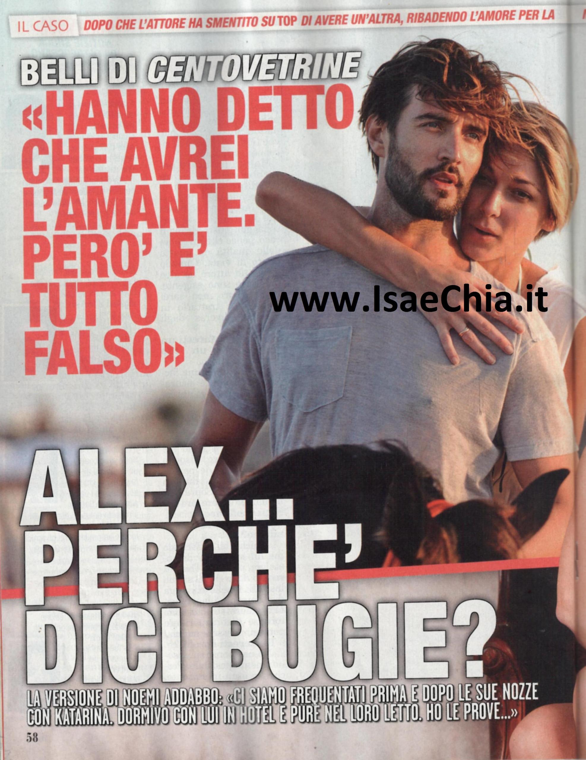 La scorsa settimana l’attore di Centovetrine Alex Belli ha deciso di rispondere pubblicamente alle accuse di Noemi Addabbo, una hostess di eventi che ha dichiarato di esser stata sua amante: Alex, infatti, è sposato con la modella di origine slovacca Katarina Raniakova. Ma adesso Noemi reagisce alle dichiarazioni dell’ex concorrente di Ballando con le stelle e dichiara: “Quando ho letto le sue dichiarazioni ho riso. Ma voglio rispondere perché non voglio passare come la bugiarda e l’amante di turno. Lo conosco da sette anni e abbiamo vissuto una relazione parallela al suo matrimonio. Lavoravamo insieme nello showroom di Roberto Cavalli e abbiamo cominciato a vederci all’epoca, ma sempre in amicizia. Per otto mesi io sono stata con un ragazzo di Modena, Alan, e in quel periodo ci siamo persi di vista. Poi, passato un anno, ci siamo ritrovati ad un evento e abbiamo ricominciato a vederci, anche se lui era già fidanzato con Katarina. Allora lui non era nessuno, faceva il modello e studiava recitazione. Siamo andati avanti a vederci ogni settimana, ma poi la nostra storia si è fatta sempre più sporadica: quando c’era Katarina non ci vedevamo. Non mi piace passare per l’amante, ma la verità è che le promesse che faceva lui mi portavano a sperare in qualche cambiamento. Quando ho saputo che si erano sposati, ho voluto troncare la nostra relazione, ma lui mi ha detto che il rapporto con Katarina era diverso. Ha iniziato a scrivermi, voleva vedermi a Ibiza e sulle Alpi, mi portava alle serate e quando mi consideravano la sua donna, non smentiva. In albergo, dormivamo nella stessa stanza. Abbiamo tanti amici in comune e frequentavamo spesso un locale che si chiama Fly“. Quando le si chiede se si rende conto della gravità delle sue affermazioni, risponde: “Certo, lo so, ma mi ha dato anche molto fastidio ciò che ha dichiarato sua moglie quando ha visto delle foto che ci ritraevano insieme. Mi ha detto che ero una persona in cerca di notorietà e che non mi conosceva, invece non è vero. Mi sembra molto strano che non abbia voluto sapere da me in persona come siano andate le cose. Mi ha dato fastidio che lei mi abbia attaccato senza conoscermi e che lui mi abbia scritto un sms dicendo che tutto sarebbe finito in una nuvola di fumo. Ora una storia con Alex non la vorrei più, però mi è dispiaciuto perdere la sua amicizia, perché abbiamo vissuto un bel rapporto. Ci siamo visti più volte anche dopo il matrimonio, anche nel letto di Katarina. Quasi tutti i giovedì lui andava a Chivasso e io lo raggiungevo lì; poi tornavamo insieme a Milano in auto. Ho le prove: ho conservato tutti i messaggi che mi mandava Alex, anche quando mi scriveva: “Stasera Katarina non c’è, possiamo vederci. Ho anche la liberatoria che ho firmato quando sono andato a trovarlo sul set di Centovetrine. Posso descrivere nei dettagli la sua casa in via Mecenate, il divano rosso e i due gatti, di cui uno si chiama Bianca. I dettagli intimi? Sono cose troppo private, ma posso dire che è fantasioso, che ama la vodka liscia e che insieme eravamo due bambini giocherelloni. Non ci vediamo più da febbraio, ma voglio dirgli che vorrei un faccia a faccia con lui e sua moglie per vedere la sua espressione. Lui è un attore anche nella vita. Ultimamente ho partecipato ad un evento in cui era annunciata la loro presenza, ma chissà come mai, non si sono presentati…”