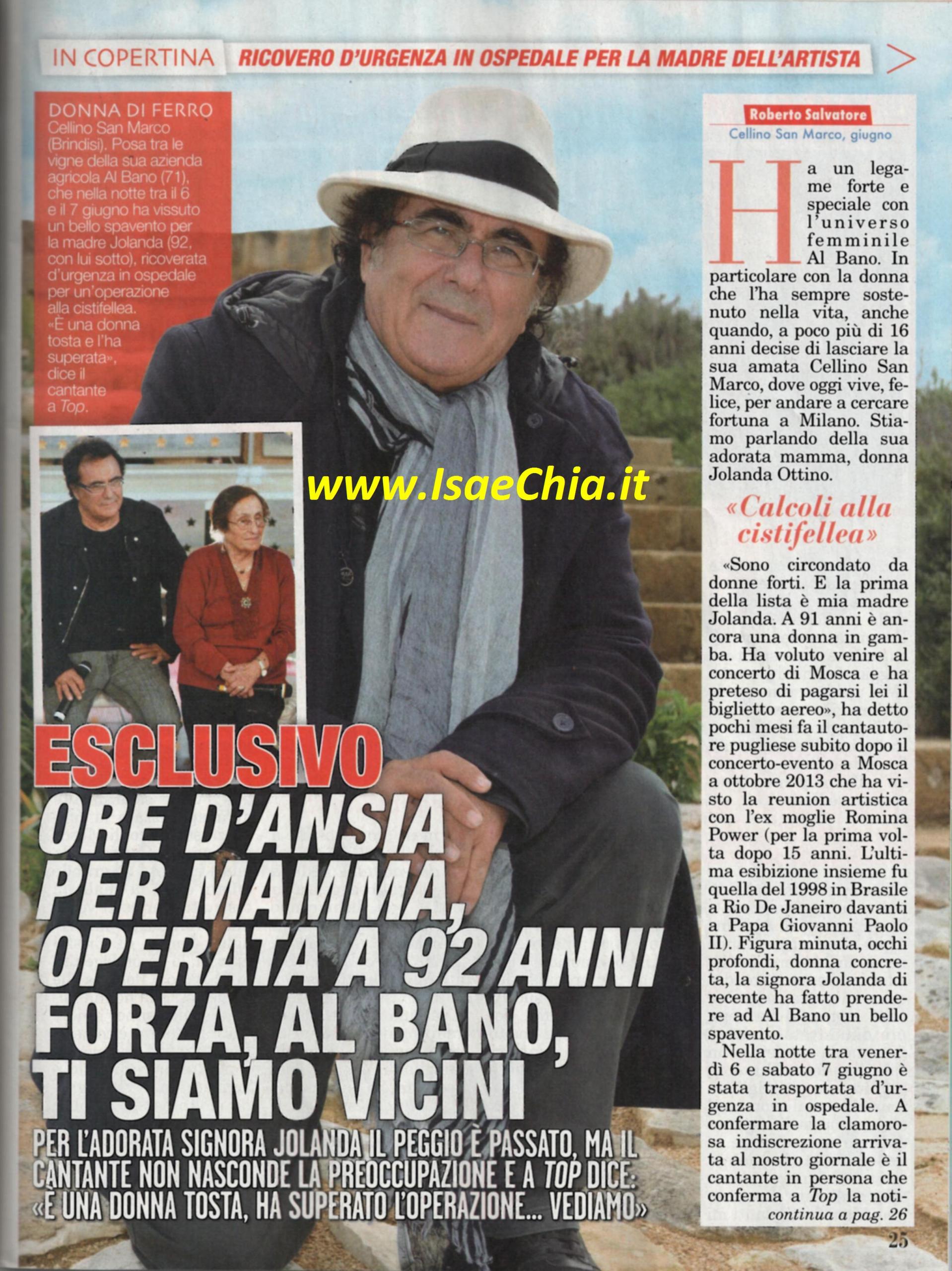 Ore d’ansia per la mamma di Al Bano, operata a 92 anni