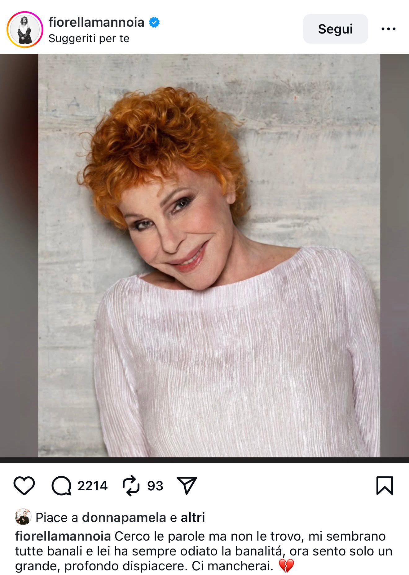 La signora della canzone italiana se ne è andata circondata dall’affetto dei suoi cari nella sua abitazione a Milano ieri in tarda serata per un arresto cardiocircolatorio. Nella sua ultima apparizione televisiva, lo scorso 2 novembre a Che tempo che fa aveva raccontato di aver alcuni problemi di salute, senza entrare troppo nello specifico. Quasi una premonizione una sua dichiarazione durante una sua ospitata televisiva mesi fa. La cantante infatti aveva affermato, con la consueta ironia che da sempre l’ha contraddistinta, che “non sarebbe arrivata a Natale”.
