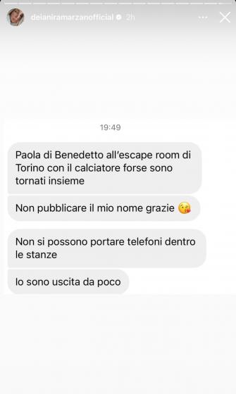 Paola Di Benedetto all’Escape Room di Torino con il calciatore. Forse sono tornati insieme. Non si possono portare telefoni dentro le stanze. Io sono uscita da poco.