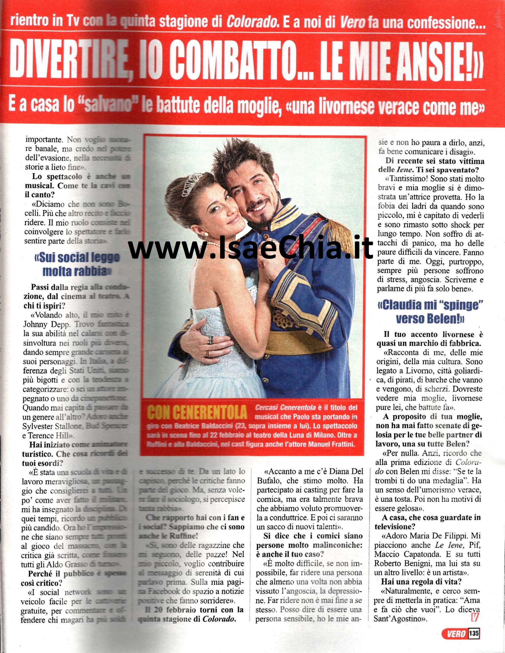 Paolo Ruffini è stato recentemente vittima di un divertente scherzo del programma Scherzi a parte, ritornato a cura del cast de Le Iene. In attesa di tornare il prossimo 20 febbraio con Colorado in compagnia dell’ex concorrente di Amici Diana Del Bufalo, l’attore comico sta girando l’Italia con il musical Cercasi Cenerentola: “Il tour va alla grande, ho avuto la possibilità di portare una favola lieve e divertente in giro per l’Italia e il pubblico sta rispondendo bene. Portiamo un messaggio positivo, ritengo che bontà e comicità possano avere un ruolo importante e credo nella necessità di evasione e nel lieto fine. Io più che altro recito e faccio ridere. Il canto? Diciamo che non sono Andrea Bocelli!“. Quando gli si fa notare che è partito come animatore turistico e ora è attore e regista, Paolo risponde: “Il mio mito è Johnny Depp: trovo fantastica la sua capacità di calarsi in panni sempre diversi, dando sempre carisma ai suoi personaggi. In Italia siamo più bigotti e abbiamo la tendenza a categorizzare: o sei un attore da cinepanettone o un attore impegnato. Il mio lavoro da animatore, un po’ come il militare, mi ha insegnato la disciplina ed è un passaggio che consiglio a tutti. Di quei tempi ricordo un pubblico più candido. Ora ho l’impressione che siamo al gioco del massacro, tutti con la critica già pronta. I social network sono un veicolo facile per le cattiverie gratuite, per commentare o offendere chi magari ha più soldi e successo di te. Da un lato lo capisco, perché le critiche fanno parte del gioco, ma dall’altro percepisco tanta rabbia. Sui social ho anche le mie fan, le Ruffine! Sono delle ragazzine che mi seguono, delle pazze! Sulla mia pagina trasmetto un messaggio di serenità e do spazio a notizie positive che fanno sorridere“. Del ritorno di Colorado, invece, dice: “Accanto a me ci sarà Diana, che stimo molto. Aveva partecipato al casting per fare la comica, ma ci è piaciuta così tanto che l’abbiamo promossa a conduttrice“. Parlando invece delle malinconie che spesso nascondono i comici, “Paolino” dichiara: “Anch’io ho le mie ansie e non ho paura a dirlo, anzi, fa bene comunicare i disagi. Nello scherzo de Le Iene, sono stati bravissimi e mia moglie Claudia si è dimostrata un’attrice provetta. Ho la fobia dei ladri sin da quando ero piccolo, mi è capitato di vederli e sono rimasto sotto shock. Non soffro di attacchi di panico, ho delle paure che non riesco a vincere. Oggi sempre più persone soffrono di stress, angoscia e scriverne e parlarne fa solo bene!“. A proposito di sua moglie, quando gli si chiede se è gelosa delle sue partner di lavoro, tra cui anche la bellissima Belén Rodriguez, Ruffini risponde: “Per nulla. Anzi, mi disse: “Se te la trombi, ti dò una medaglia! Ha un senso dell’umorismo verace, è una tosta. E non ha motivo di essere gelosa“. Infine, conclude rivelando cosa guardano in tv di solito: “Adoro Maria De Filippi, mi piacciono anche Le Iene, Pif e Maccio Capatonda. E su tutti Roberto Benigni, ma lui sta su un altro livello, è un artista“.
