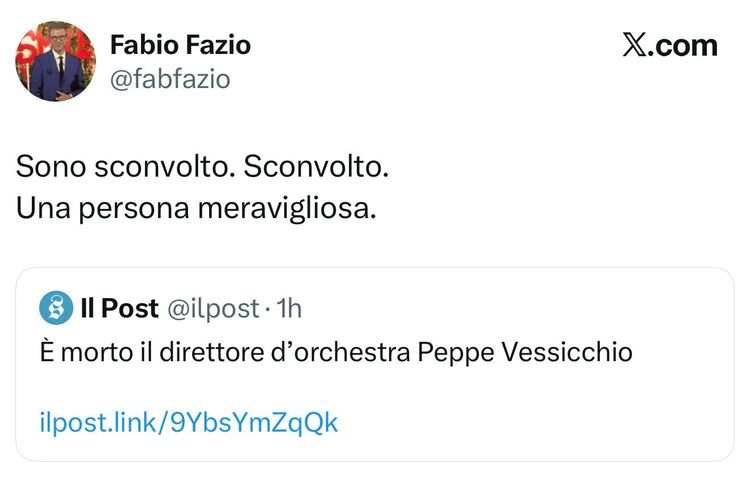 Sono sconvolto. Sconvolto. Una persona meravigliosa. – F.Fazio