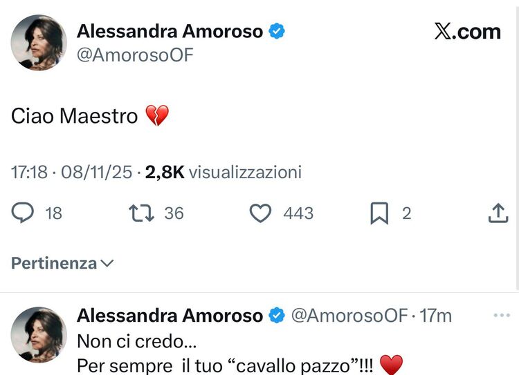 Questa la notizia diffusa dall’ospedale in accordi stretti con la famiglia. Dopo la diffusione della tragica scomparsa, moltissimi volti noti nel mondo dello spettacolo si sono stretti in un caloroso saluto al maestro. Partendo da Maria De Filippi che ha più volte ospitato all’interno di Amici il compositore musicale. In un comunicato social su Instagram ecco cosa ha scritto la conduttrice: