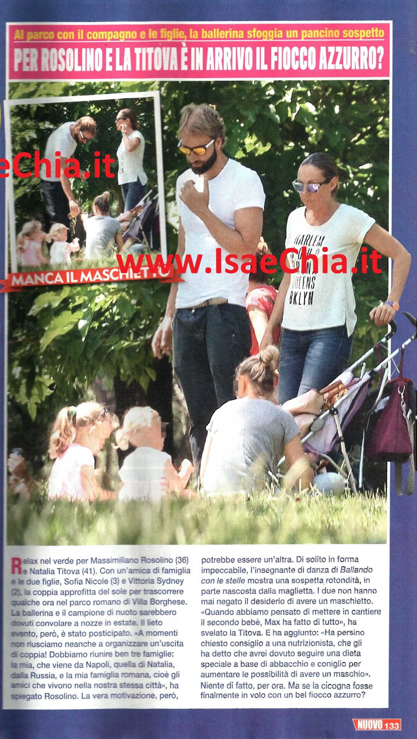 Siamo abituati a vederli sempre in attività, il nuotatore Massimiliano Rosolino e la sua compagna, la ballerina Natalia Titova. Ma finalmente, anche per loro, c’è qualche momento di relax. Eccoli, infatti, insieme alle loro due figlie nel parco romano di Villa Borghese. La maestra di Ballando con le stelle e il vincitore di Pechino Express 2 sarebbero dovuti convolare a nozze quest’anno, ma alla fine hanno rimandato: “A momenti non riusciamo ad organizzare nemmeno un’uscita di coppia! Dobbiamo riunire ben tre famiglie: la mia, che viene da Napoli, quella di Natalia, che viene dalla Russia e…la nostra famiglia romana, ossia i nostri amici” ha detto lui. Ma la vera motivazione potrebbe essere un’altra. I due non avevano nascosto di desiderare un figlio maschio e in queste foto, Natalia, che è sempre al massimo della forma fisica, mostra qualche rotondità in più sul ventre sotto la maglietta. “Quando abbiamo pensato ad avere un maschietto, Massimiliano ha fatto di tutto. Ha persino chiesto ad una nutrizionista, che ha detto che avrei dovuto mangiare abbacchio e coniglio“. A quanto pare, il consiglio non era servito a molto. Che ci abbiano provato ancora?