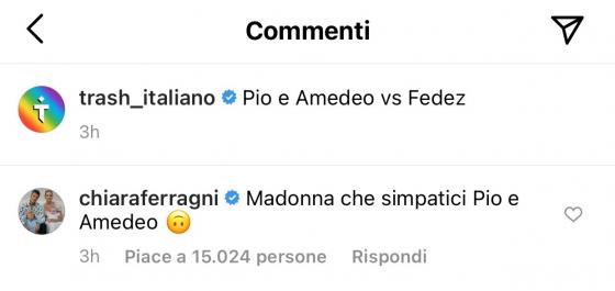 Ad esporsi, questa volta, è stata Chiara Ferragni, moglie del cantante. L’influencer è infatti intervenuta sotto un post pubblicato dal profilo Instagram di Trash Italiano: