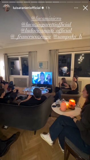 Luisa ha poi pubblicato nelle sue storie uno scatto che ritrae il cast insieme per guardare la prima puntata della fiction e tra i presenti compare anche lo stesso Brunetti.