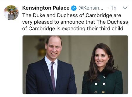 Dopo il maestoso matrimonio avvenuto il 29 aprile 2011, Kate e William sono diventati genitori del piccolo George Alexander Louis il 22 luglio 2013, mentre il 2 maggio 2015 è nata la Principessa Charlotte Elizabeth Diana. A distanza di poco più di due anni da quella data che ha regalato alla famiglia reale questa nuova e immensa gioia, la bellissima Duchessa è nuovamente in dolce attesa, com’è stato annunciato pochissimi minuti fa dal profilo Twitter di Kensington Palace:
