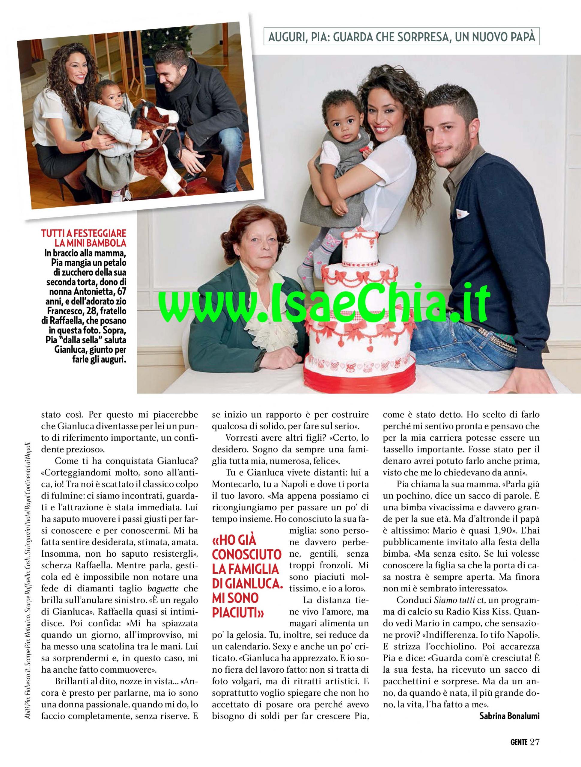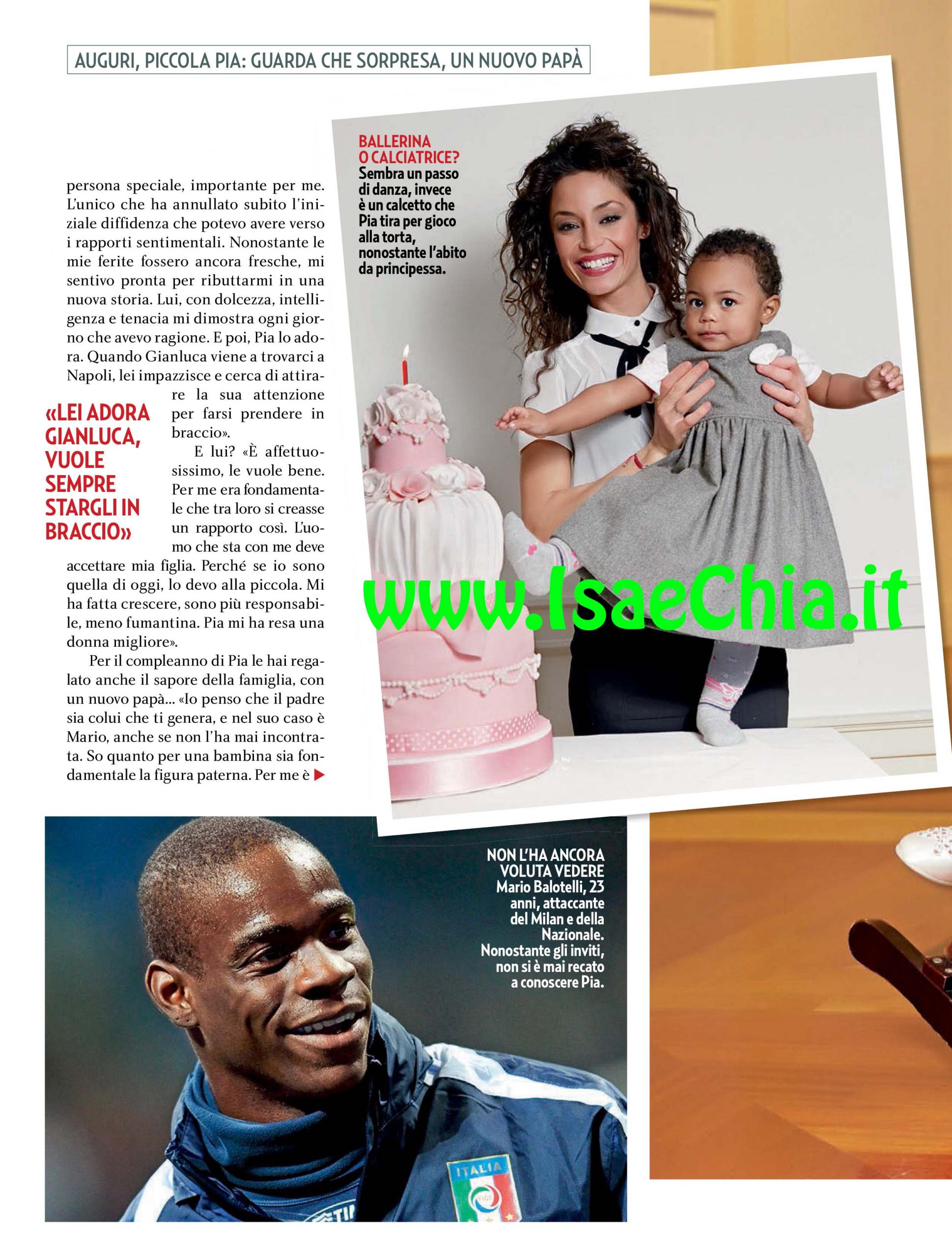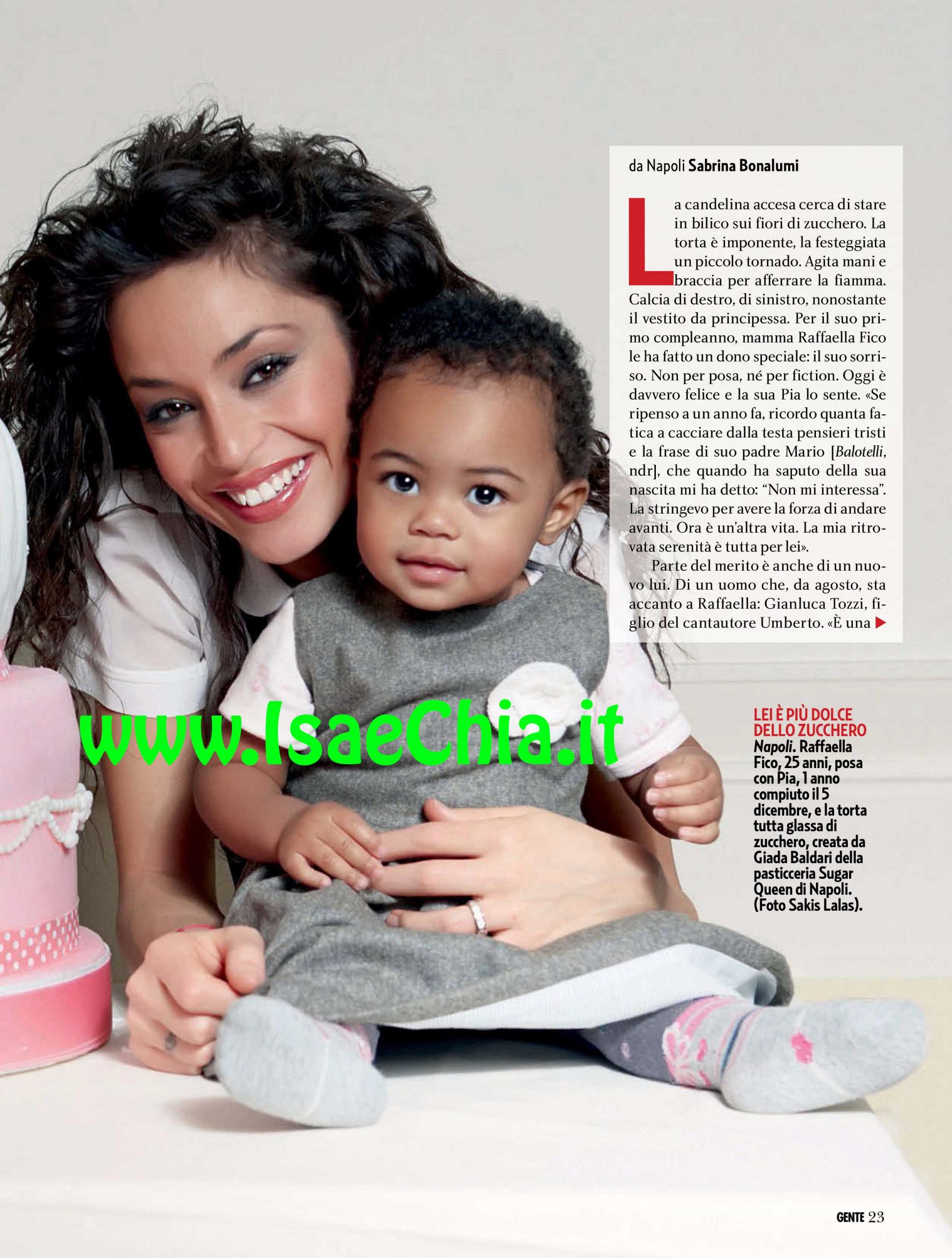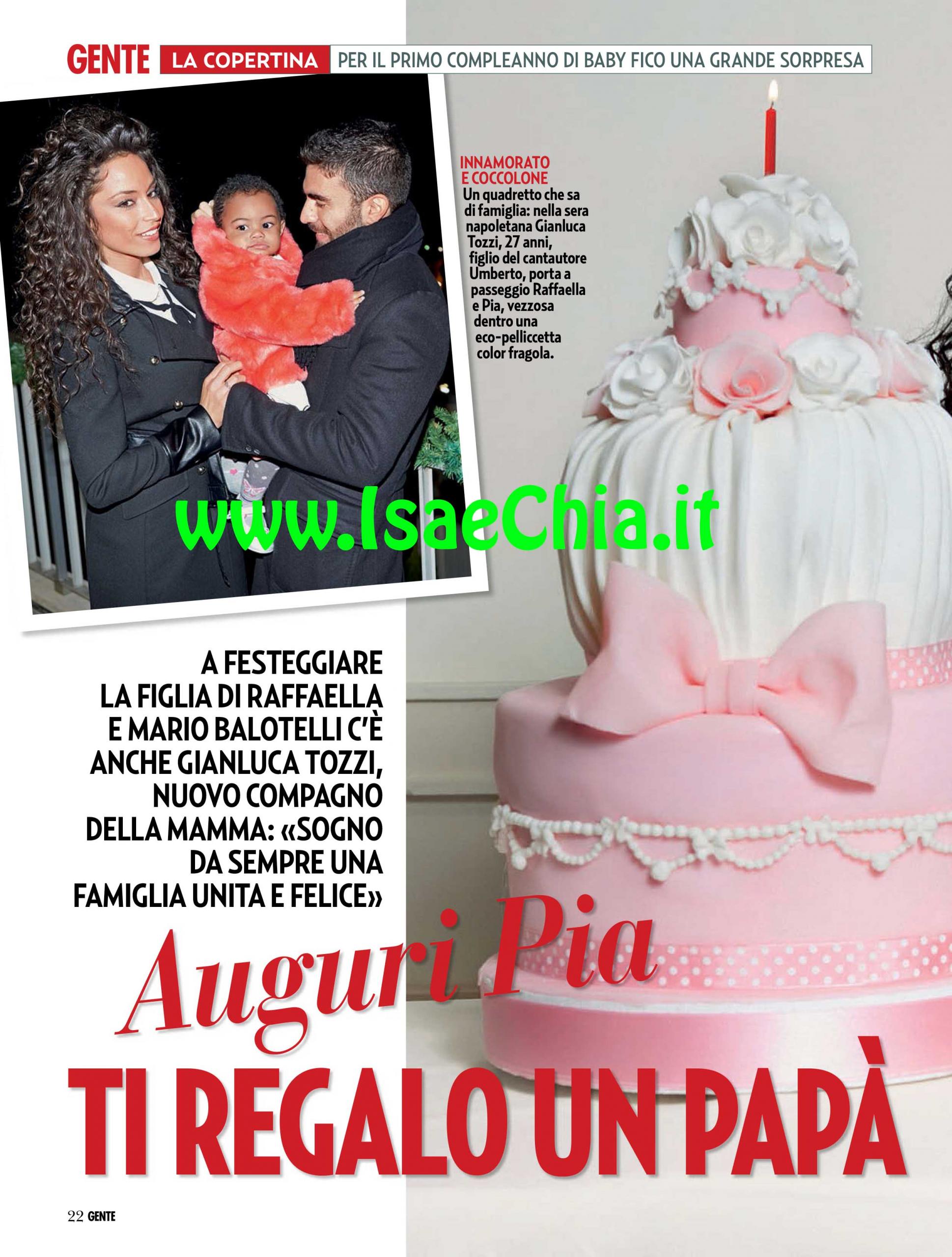 La piccola Pia, figlia della gieffina Raffaella Fico, ha compiuto un anno. In occasione della prima festa di compleanno, la mamma racconta: “Se ripenso a un anno fa, ricordo quanta fatica a cacciare dalla testa i pensieri tristi e la frase di suo padre, Mario Balotelli: “Non mi interessa”. La stringevo forte per trovare la forza di andare avanti. Ora, invece, è un’altra vita, ho ritrovato la serenità. Gianluca Tozzi è una persona speciale e importante per me: ha annullato l’iniziale diffidenza che avevo verso i rapporti sentimentali. Con dolcezza, intelligenza e tenacia mi ha dimostrato ogni giorno che avevo ragione: mi sentivo pronta per una nuova storia, nonostante le ferite fresche. L’attrazione è stata immediata, ma mi ha corteggiata molto. Mi ha fatto sentire desiderata e non ho saputo resistergli. Pia lo adora: quando viene a trovarci fa di tutto per attirare la sua attenzione e farsi prendere in braccio da lui. Lui le vuole bene e per me questo era fondamentale. L’uomo che sta con me deve accettare mia figlia: se sono quella che sono oggi, lo devo a lei”. A proposito di Balotelli, invece, la Fico dichiara: “Credo che il vero padre rimanga quello che ti genera. So quanto per una bambina sia importante una figura paterna. L’ho invitato alla festa, ma senza esito. Se lui volesse conoscere la figlia, la porta di casa nostra è sempre aperta. Mi piacerebbe che Gianluca diventasse un punto di riferimento per lei. Mi ha stupita quando un giorno, all’improvviso, mi ha messo una scatolina tra le mani” dice lei, riferendosi al suo anello di fidanzamento. E’ ancora presto per parlare di nozze, anche se sono una passionale e quando mi do lo faccio completamente e se inizio un rapporto è per costruire qualcosa di serio. Ho conosciuto la sua famiglia: sono persone perbene, gentili, senza fronzoli. Lui vive a Montecarlo, ma appena possiamo ci ricongiungiamo. Gianluca ha apprezzato il mio calendario: non sono foto volgari, ma artistiche. E voglio spiegare che non ho accettato perché avevo bisogno di soldi per crescere Pia, ma perché mi sentivo pronta e pensavo che per la mia carriera potesse essere un tassello importante. Se fosse stato per soldi, avrei potuto accettare prima: me lo chiedevano da anni”.