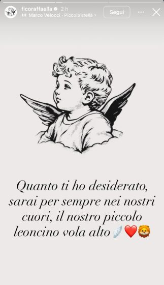 Prima che si creino false speculazioni, io e la mia compagna, Raffaella Fico, desideriamo comunicare che abbiamo avuto una grave perdita, purtroppo il nostro bambino di 5 mesi ci ha lasciati troppo presto e resterà per sempre nei nostri cuori.