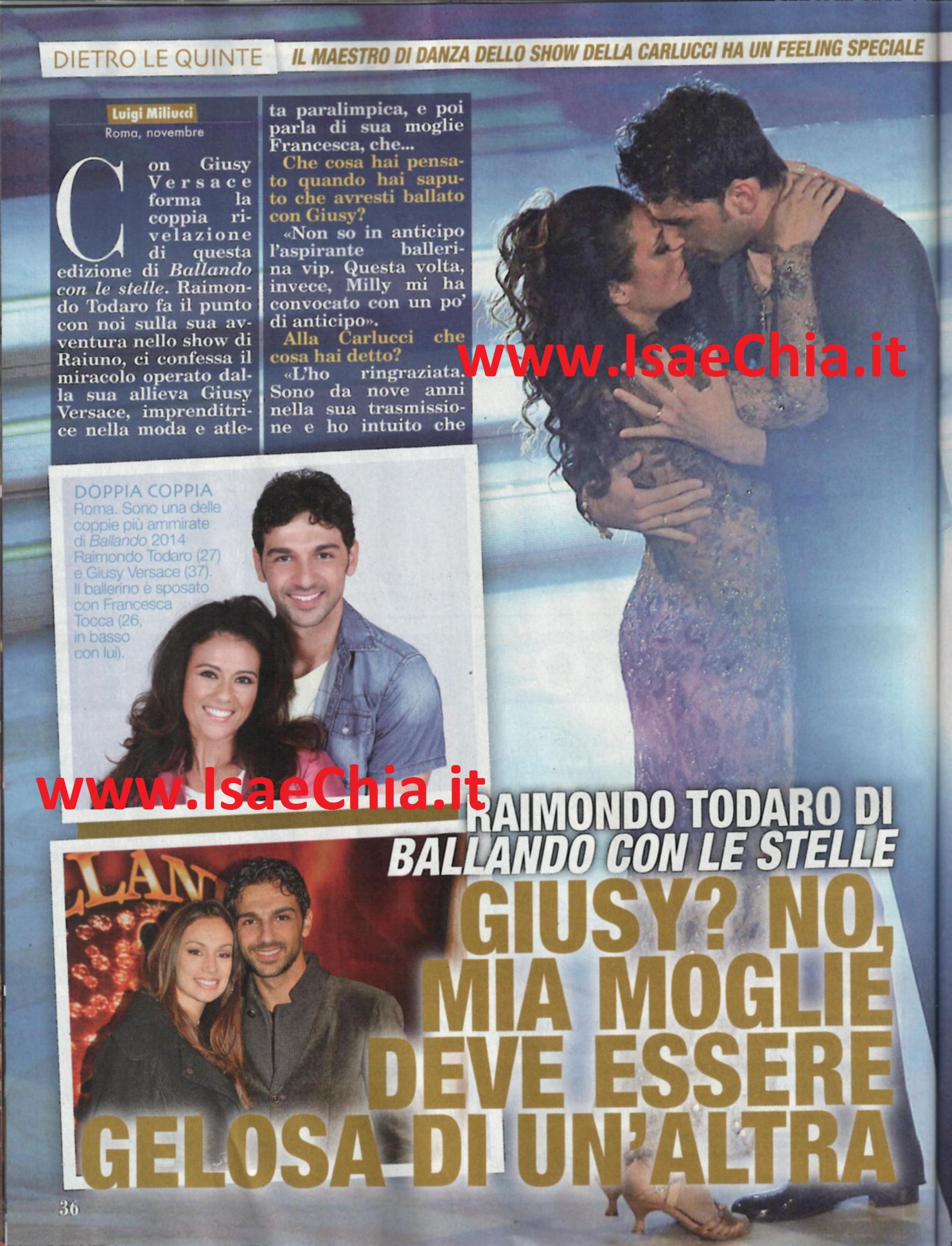 Giusy Versace, imprenditrice nella moda e atleta paraolimpica, è la rivelazione di quest’edizione di Ballando con le stelle. In coppia con lei c’è Raimondo Todaro, che così si candida a vincere ancora una volta il programma. “In genere non conosco in anticipo la partecipante che mi verrà assegnata. Stavolta, invece, Milly Carlucci mi ha convocato con un po’ d’anticipo. Io l’ho ringraziata: sono da nove anni nella trasmissione e ho intuito che ballare con Giusy sarebbe stato un’esperienza stimolante e inedita. E’ stata una bella attestazione di stima nei miei confronti, si sono fidati di me e mi hanno affidato una missione così delicata. Stavolta, oltre ad insegnare danza alla mia allieva, anch’io ho dovuto imparare molte cose. Pensavo a cosa potessi dire a Giusy, da quale ballo partire, se fosse preferibile parlare con lei della sua disabilità o far finta di niente. Non sapevo come affrontare questa situazione dal punto di vista professionale e personale. Poi, appena l’ho conosciuta, è sparito ogni dubbio. Si presenta con una maglietta giallo fluorescente, abbiamo scherzato e riso tutto il tempo e anche grazie alla sua autoironia ogni imbarazzo si è sciolto. Abbiamo affrontato bene anche un incidente: durante la prima lezione, Giusy ha perso una delle sue protesi alle gambe. Erano passati dieci minuti da quando ci eravamo stretti la mano e lei ha detto: “Accidenti, ho perso una gamba. Me la prendi per favore?”. Ecco perché quando qualche settimana fa ci è successo anche in diretta, abbiamo saputo gestire lo shock. Sotto molteplici aspetti, entrambi abbiamo già vinto: abbiamo vinto le nostre sfide personali e imparato l’uno dall’altra. Giusy ha compiuto un miracolo, in pista e fuori” racconta il bel ballerino. Quando invece gli si chiede se sua moglie Francesca è gelosa della sua partner di gara, risponde: “Mia moglie fa il mio stesso mestiere, quindi sa come funziona. Anzi, è diventata molto amica di Giusy. Francesca mi conosce bene, sa che sono una persona espansiva e anch’io non ho problemi a vederla ballare con un altro. L’unica di cui può essere gelosa mia moglie è nostra figlia Jasmine! Quello sì che è un tasto dolente. Probabilmente, tra qualche anno, il mio chiodo fisso sarà tenere alla larga i suoi corteggiatori!”