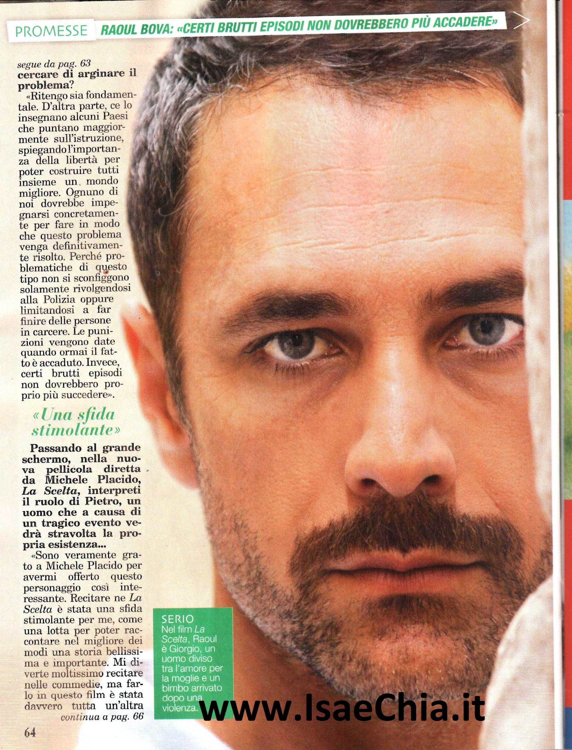 L’attore Raoul Bova è nelle sale con il nuovo film La scelta e sarà presto sui piccoli schermi nella serie Task Force, dove recita al fianco di Megan Montaner, l’attrice spagnola nota per il ruolo di Pepa nella soap Il Segreto. “Megan interpreta una donna che dopo una violenza sessuale mette al mondo una bambina. La storia sarà incentrata su un rapimento, ma si affronteranno anche tematiche come l’uso di armi batteriologiche e gli esperimenti a cui vengono sottoposti alcuni bambini misteriosamente sequestrati. Io vestirò i panni di un uomo che cerca di capire cosa si nasconde davvero dietro agli eventi. Sono veramente grato a Michele Placido, invece, per avermi offerto un personaggio così interessante nel film La scelta. E’ stata una sfida stimolante per me, una lotta per poter raccontare nel migliore dei modi una storia bellissima e importante. Mi piace molto recitare nelle commedie, ma farlo in questo film è tutta un’altra cosa. In genere credo non sia facile trovarsi nella situazione di un uomo la cui compagna è incinta senza sapere chi sia il padre. Placido ci ha lasciati liberi di costruire i nostri personaggi. Io e Ambra Angiolini abbiamo avuto difficoltà a gestire il rapporto di coppia tra i nostri due personaggi, perché eravamo troppo immersi in ciò che stavamo facendo. Per il resto, il mio personaggio cambia continuamente; ho amato le sue sfumature e la sua fragilità“. Entrambi i progetti, così come Amore nero, il progetto dell’anno scorso con Michelle Hunziker, trattano la tematica della violenza femminile. “Quello della violenza sulle donne è un problema che mi sta molto a cuore, così come lo è la violenza nei confronti dei bambini o di chiunque altro. Continuerà questa mia battaglia nei film e in qualunque altro modo possa servire. Ultimamente è stato fatto qualche passo avanti, dato che lo stalking è stato riconosciuto come un reato. La violenza sulle donne è un reato molto grave, un omicidio dell’anima: dopo una violenza, una donna non è la stessa di prima e prima di recuperare la sua femminilità ci vuole molto tempo. Tante non riescono a ritrovare la serenità perduta e lo stesso discorso vale per la violenza sui più piccoli. Ritengo sia fondamentale educare i nostri figli al rispetto altrui: alcuni Paesi puntano più sull’istruzione, spiegando l’importanza della libertà di per poter costruire tutti insieme un mondo migliore. Ognuno dovrebbe impegnarsi concretamente perché questo problema venga risolto. Queste problematiche non si sconfiggono solo rivolgendosi alla Polizia; le punizioni vengono date solo quando il fatto è ormai accaduto, invece certi episodi non dovrebbero proprio succedere“.