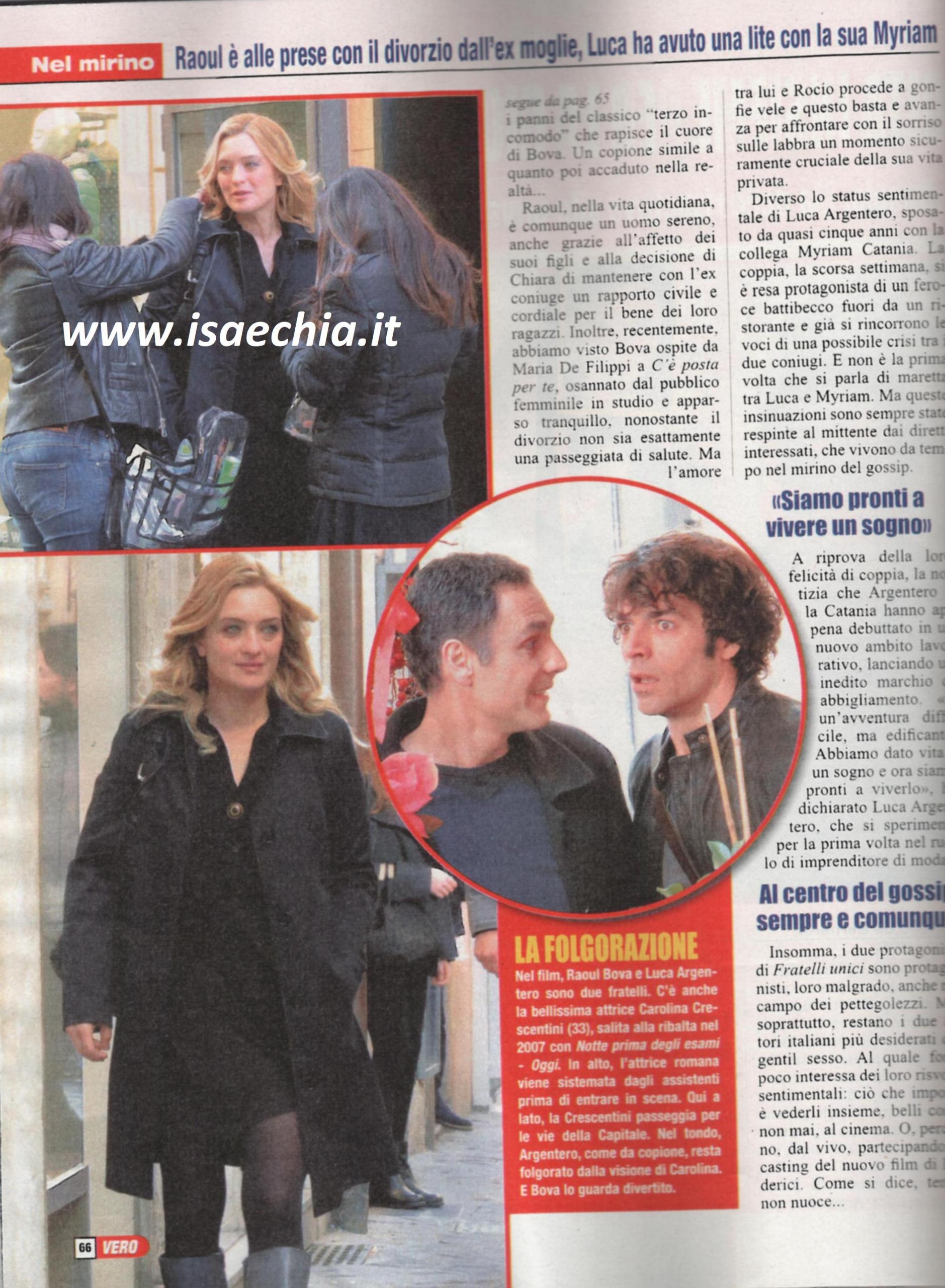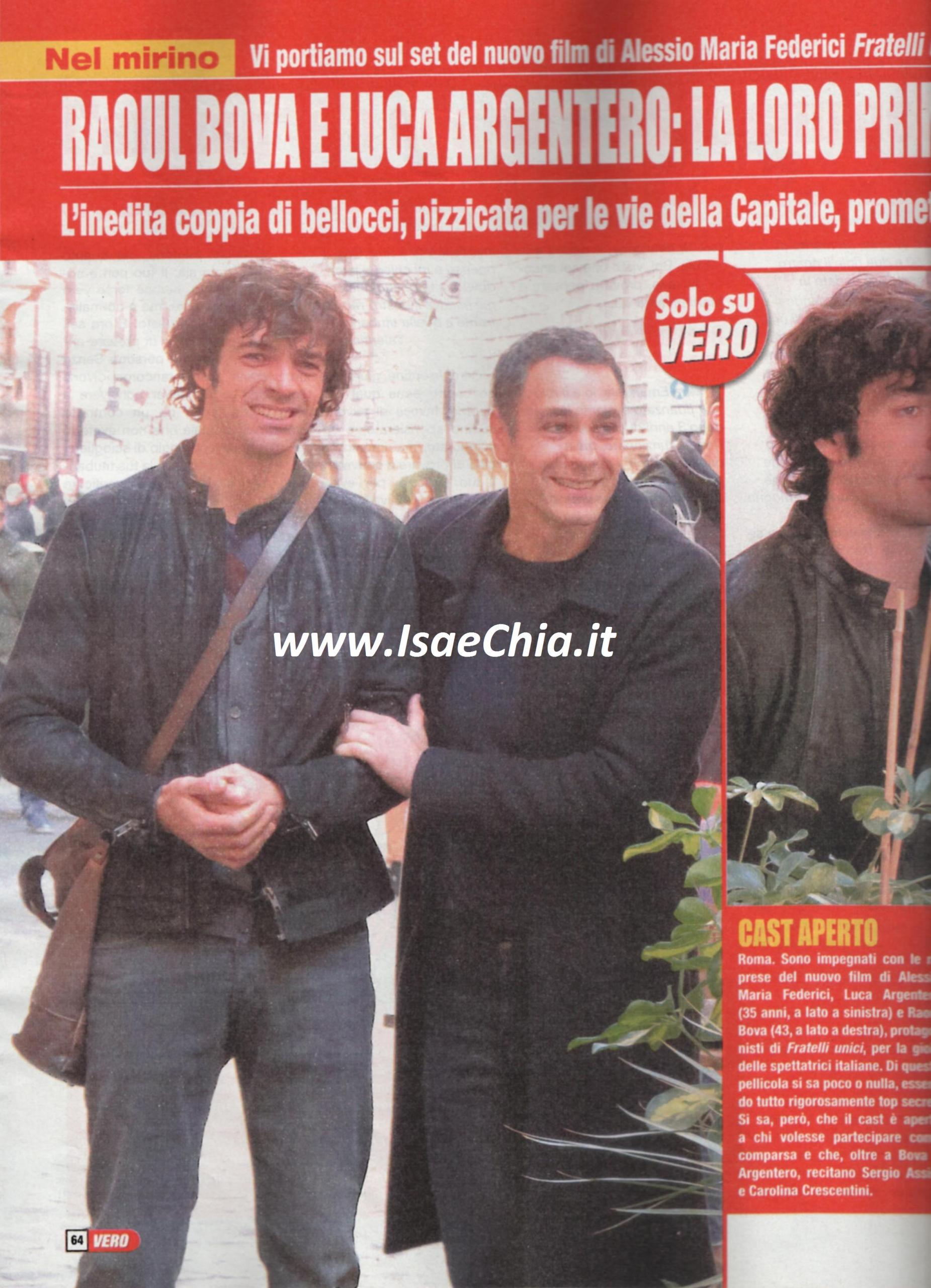 Recentemente hanno fatto scalpore le foto di Raoul Bova mentre bacia con passione Marco Bocci sul set di un film (QUI tutte le foto). Adesso, Bova è apparso anche in presenza di un altro attore molto amato dalle Italiane: Luca Argentero. Le fan realizzeranno il desiderio di vederli finalmente insieme quando uscirà il nuovo film diretto da Alessio Maria Federici, Fratelli unici. Le riprese, ambientate a Roma sono ancora in corso, mentre vengono selezionate le comparse. Cos’hanno in comune i due attori? Baruffe in campo sentimentale: il romano dagli occhi azzurri è reduce dal divorzio con Chiara Giordano, che non è stato esattamente una passeggiata, anche se ora ha ritrovato la serenità al fianco dell’attrice spagnola Rocio Munoz Morales. L’ex gieffino, invece, è sposato da 5 anni con l’attrice Myriam Catania, ma recentemente i due sono stati fotografati mentre discutevano animatamente (QUI tutte le foto). Le voci di una loro crisi, tuttavia, è smentita dalla fondazione di un marchio di abbigliamento tutto della coppia.