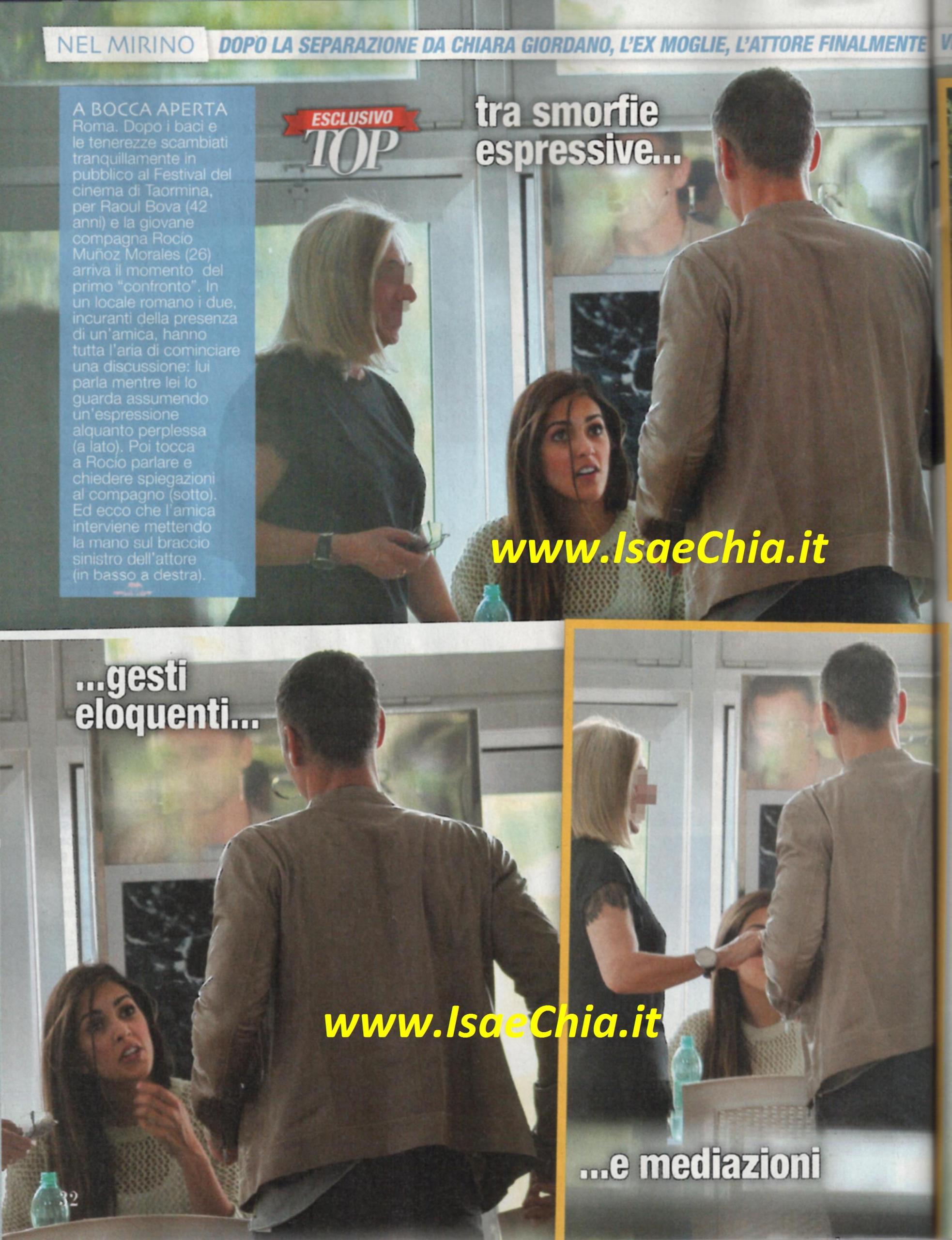 Dopo i baci e le tenerezze che si erano scambiati per la prima volta in pubblico al Festival del cinema di Taormina (QUI l’articolo), l’attore Raoul Bova e la sua fidanzata Rocio Munoz Morales si mostrano anche sotto altre vesti. Per i due, infatti, è giunto il momento del primo “confronto”. In un locale romano, i due, incuranti della presenza di un’amica, iniziano una discussione, testimoniata dall’espressione prima perplessa e poi agitata della giovane attrice spagnola. L’amica interviene poi mettendo la mano sul braccio di Bova, come a volerlo convincere di calmarsi. Lui lascia il locale, ma poco dopo si attacca al cellulare e ci resta per un po’, con l’aria stanca. A nove mesi dalla separazione da Chiara Giordano, infatti, Bova si ritrova ad affrontare la voce di una gravidanza di Rocio, che, se confermata, sarebbe davvero clamorosa. Troppi pensieri per lui?