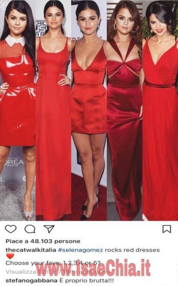 Negli scorsi giorni è stato il noto stilista di Dolce & Gabbana, Stefano Gabbana, a esprimere una propria opinione sotto una foto che ritraeva la cantante e attrice statunitense Selena Gomez con indosso 5 diversi abiti rosso sfavillante. La pagina in questione aveva mostrato la 25enne in questi differenti scatti, chiedendo ai propri seguaci quale vestito della Gomez preferissero e, tra i numerosissimi commenti che subito hanno inondato il profilo Instagram di TheCatWalkItalia, è risaltato quello di Gabbana, che con un ‘E’ proprio brutta!‘ ha attirato a sé diverse critiche e attacchi da parte dei fan di Selena: