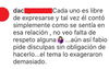 Quando lui ha detto questa cosa io ci sono rimasta veramente male. Quando vivi quattro anni con una persona non ti aspetti che siano quattro anni di inferno. […] Io non sono una replica infatti mi hanno invitato tante volte a parlare ma io non ho mai voluto. I provvedimenti che ho preso li ho presi soprattutto per una questione di giustizia perché un uomo non dovrebbe parlare così di una donna nemmeno al bar con gli amici, figuriamoci in diretta nazionale. Siamo dovuti andare per vie legali perché io non volevo andare in puntata a parlarne e poi volevo fermare tutta questa situazione, un triangolo amoroso che non è ma esistito. Son un personaggio pubblico, se lui vuole parlar di me può farlo però ora non può più denigrarmi, umiliarmi.
