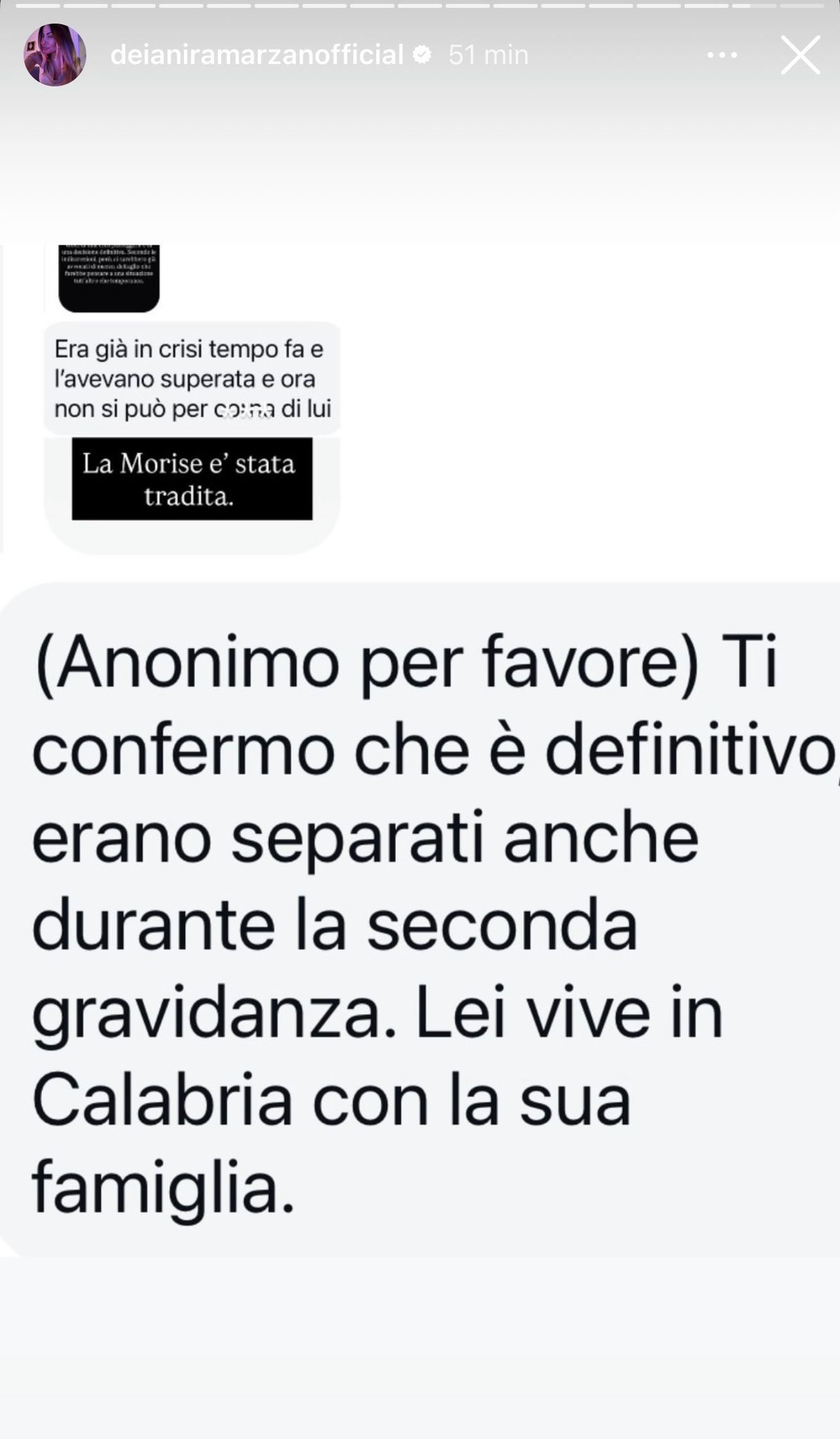 Il loro amore, nato da un colpo di fulmine che li ha portati in soli tre anni a sposarsi e ad avere due figli, si è spento altrettanto in fretta e a svelare ulteriori retroscena su questa vicenda è stata Deianira Marzano, che ha postato sul suo profilo Instagram alcune segnalazioni giunte da utenti che sarebbero a conoscenza dei risvolti privati della storia.