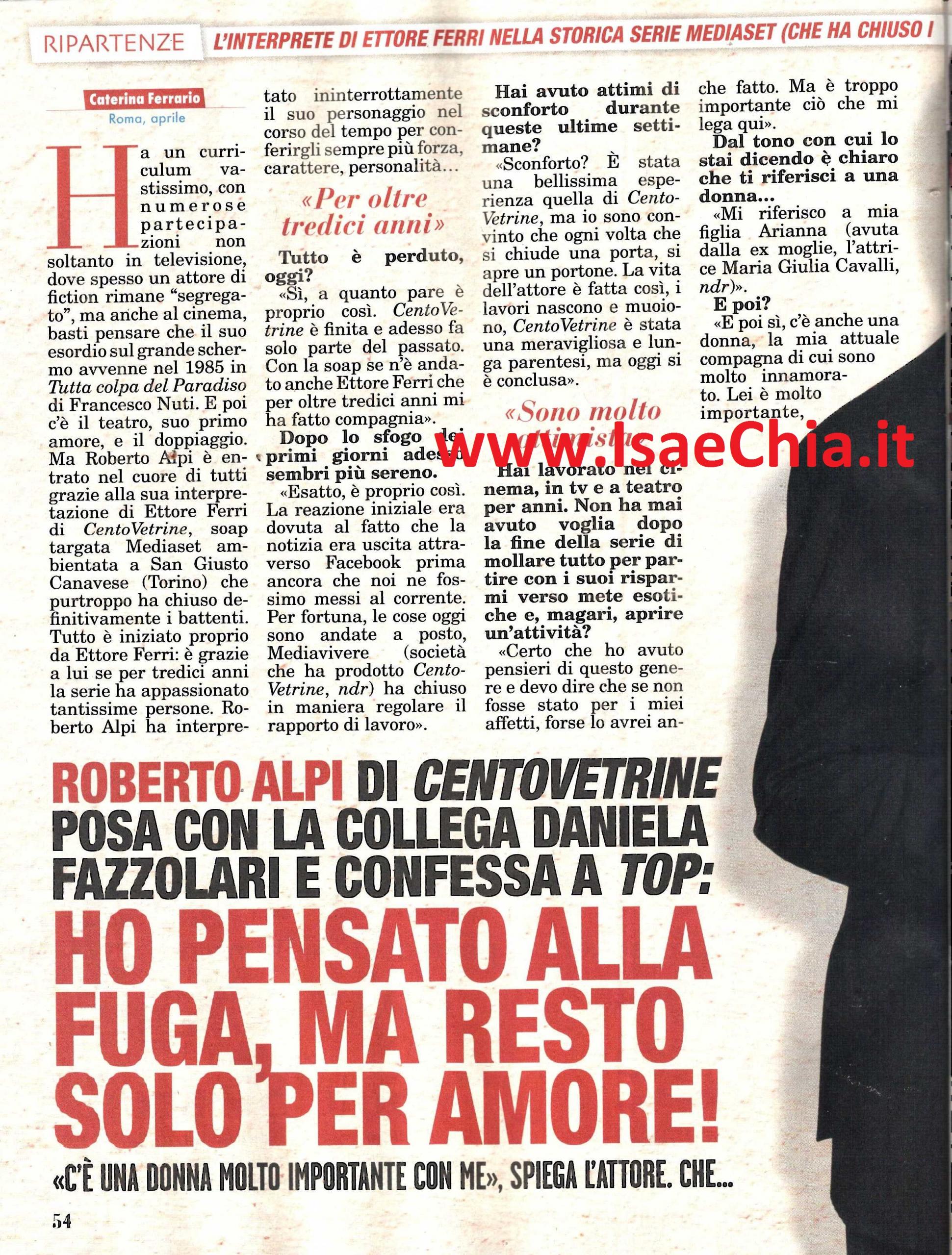 La notizia della chiusura della storica soap opera di Canale 5 CentoVetrine ha deluso molti telespettatori, ma soprattutto gli attori che da anni prestavano il loro volto ai personaggi, come Roberto Alpi, l’interprete di Ettore Ferri. Intervistato, l’attore 62enne commenta: “A quanto pare è così: tutto finito. Adesso CentoVetrine fa solo parte del passato, è stata una bellissima esperienza e con la soap se n’è andato anche Ettore Ferri, che per 13 anni mi ha fatto compagnia. La mia forte reazione iniziale è stata dovuta al fatto che la notizia fosse uscita attraverso Facebook, prima ancora che tutti noi ne fossimo messi al corrente. Per fortuna ora le cose sono andata a posto e la società produttrice ha chiuso in maniera regolare il rapporto di lavoro. Ho avuto voglia di mollare tutto e scappare in una meta esotica e devo dire che, se non fosse stato per i miei affetti, forse lo avrei fatto. Ma è troppo importante ciò che mi lega qui…” dice lui. Quando gli si chiede se si riferisce ad una donna, lui ammette: “Mi riferisco a mia figlia Arianna, avuta dalla mia ex moglie Marina Giulia Cavalli. E poi sì, c’è anche una donna, la mia attuale compagna, di cui sono molto innamorato. Lei è molto importante e abbiamo dei progetti, ma per ora non voglio dire troppo“. Infine, quando gli si chiede cosa farebbe se la società produttrice Mediavivere decidesse di prolungare CentoVetrine, Roberto risponde: “Non lo farà, ma non è detto che, vista la mia esperienza, un giorno non decida di proporla in radio! Sarebbe un successo, ne sono sicuro. Ora mi vedo in una saga tipo Una grande famiglia: quello è il genere di serie che mi si addice“.