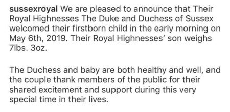 ‘It’s a boy’ ha infatti annunciato a gran voce con un post su Instagram il duca di Sussex, che al settimo cielo ha rassicurato tutti gli affezionati delle mirabolanti avventure degli Windsor sulle buone condizioni di salute sia del piccolo (che pesa 3 chili e 260 grammi) sia della duchessa, che anche in occasione del parto non ha mancato di rompere le consuete tradizioni reali.