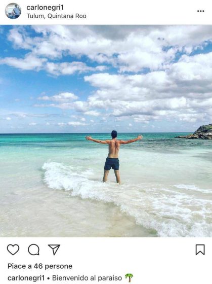 Il fortunato in questione sembra rispondere al nome di Carlo Negri, e – come si evince dal suo profilo Instagram – effettivamente anche lui si trova in vacanza a Tulum: