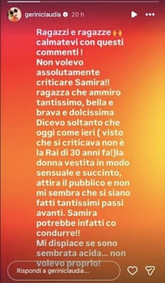 Le parole di Claudia hanno scatenato non poche polemiche e così nelle scorse ore l’attrice ha deciso di chiarire la sua posizione tramite una storia pubblicata sul suo profilo Instagram: