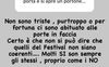 Non sono triste. Purtroppo o per fortuna alle porte in faccia ci sono abituato. Certo è che non si può dire che quelli del Festival siano coerenti. Molti “sì” son sempre gli stessi, proprio come i “no”.