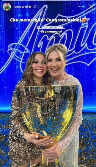 Nel frattempo, dopo la reazione di Sarah sui social, è arrivata anche quella della sua insegnante. In una storia pubblicata sul suo profilo Instagram, Lorella ha postato una foto insieme alla sua ex allieva con la Coppa e a corredo la didascalia:
