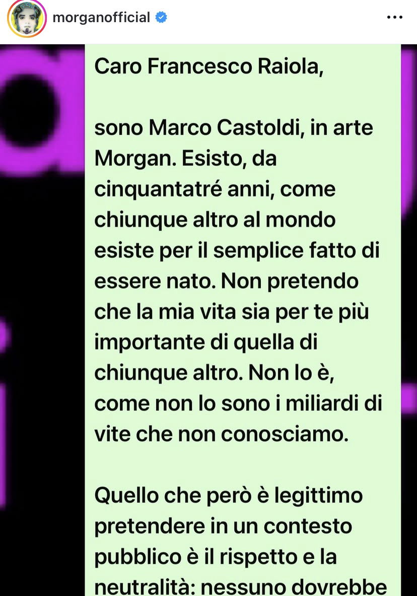 Nella notte è arrivata la dura reazione di Morgan.