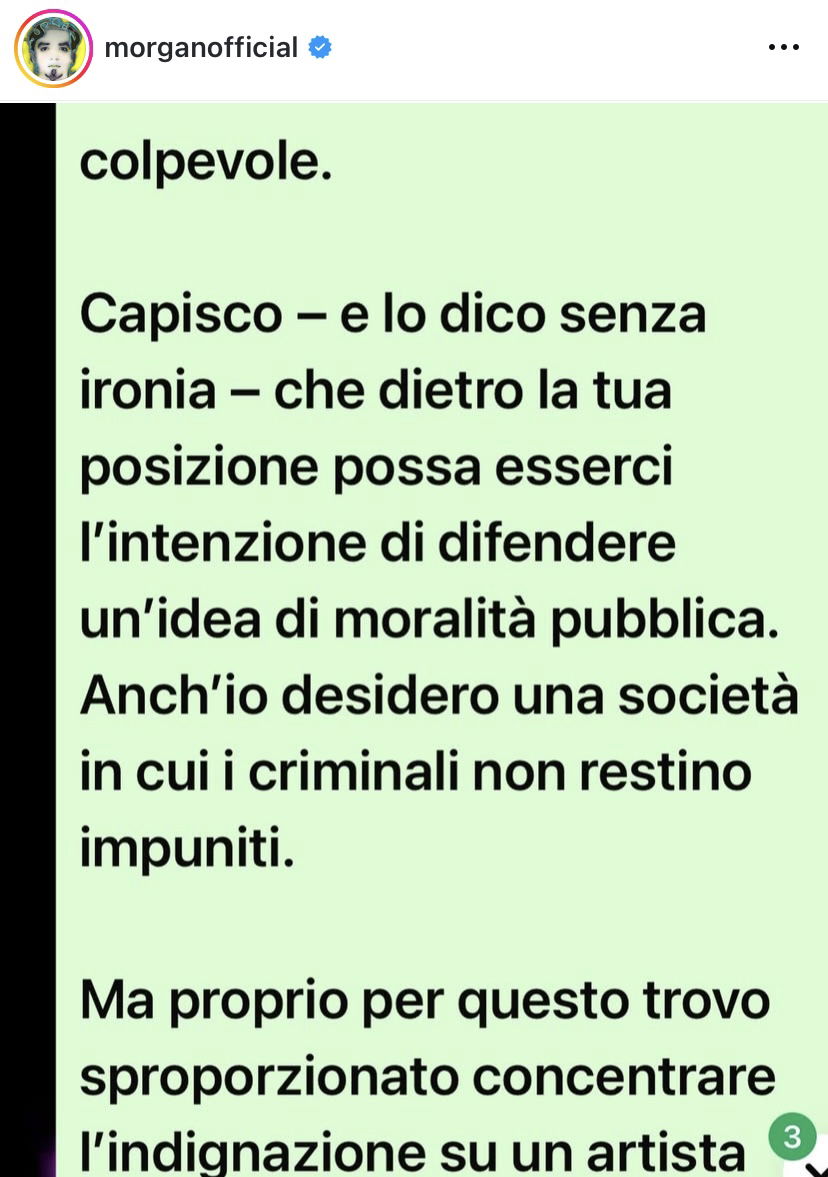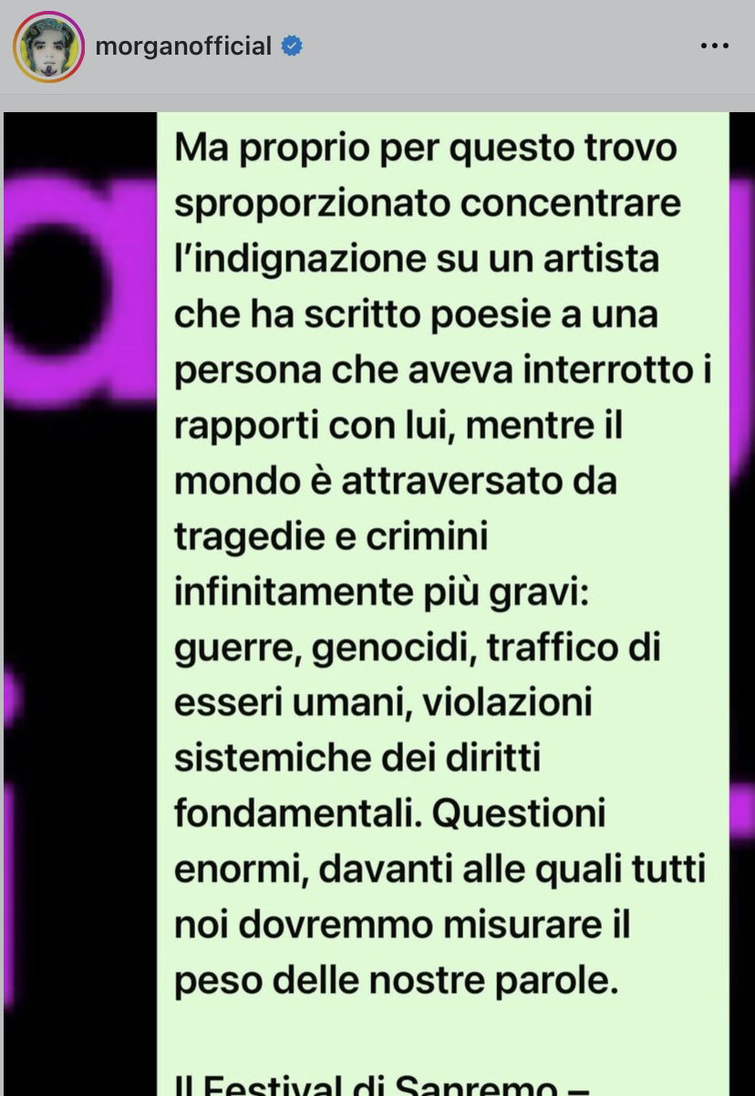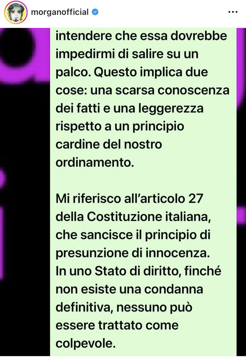 @fanpage.it Morgan è stato denunciato per stalking da una cantautrice che è stata risarcita per 100mila euro. La sentenza non è definitiva, ma abbiamo chiesto a Carlo Conti se come direttore artistico riteneva fosse giusto che Morgan fosse su questo palco. “Non sono un giudice e senza una sentenza definitiva non posso dire io ad un’artista con chi esibirsi per una cover che ritengo musicalmente valida. Siamo in un Paese democrativo” Voi che ne pensate? Siete d’accordo?